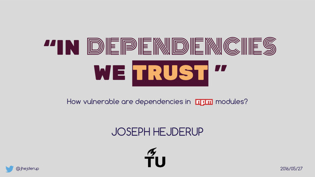 one dependency that is disclosed as vulnerable? What is the cascading effect of modules depending on at least one vulnerable module? What is the time latency for updating to a non-vulnerable version range for a dependency? RQ1 RQ2 RQ3 RESEARCH QUESTIONS Answering it both Qualitatively & Quantitatively!