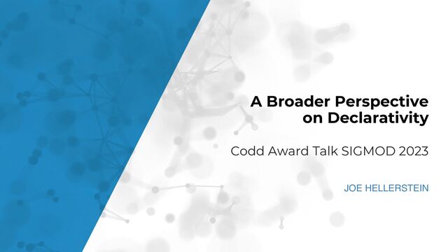 A short talk given at the awards ceremony, SIGMOD 2023. The talk advocates for adapting Codd's tradition of declarative programming beyond relational databases to the full breadth of computing. QR codes are given to a few exemplary resources along the way from my team's work.