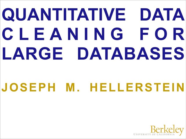 library robust statistics, DB analytics some open problems/directions scaling robust stats, intelligent data entry forms J. M. Hellerstein, “Quantitative Data Cleaning for Large Databases”, http://db.cs.berkeley.edu/jmh/papers/cleaning-unece.pdf