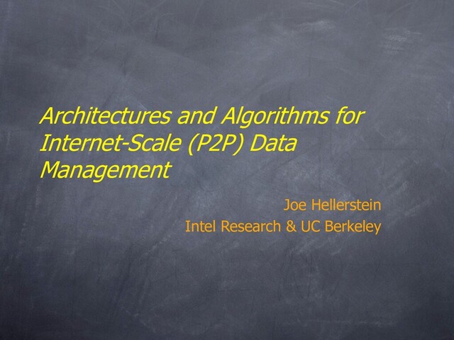 Tutorial: Architectures and Algorithms for Internet-Scale (p2p) Data Management.