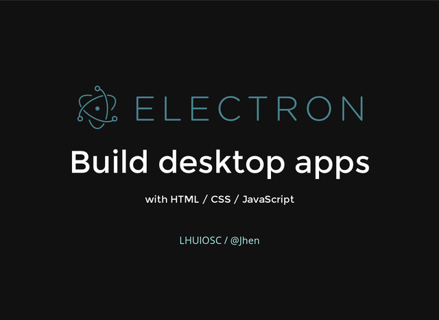 Electron 是 Github 團隊開發的跨平台桌面應用程式(cross platform desktop application)開發工具,基於 io.js 與 chromium, 允許使用前端技術(HTML/CSS/JavaScript) 與 io.js(node.js) 來開發可運行在 Linux, OS X, Windows 的 desktop apps.