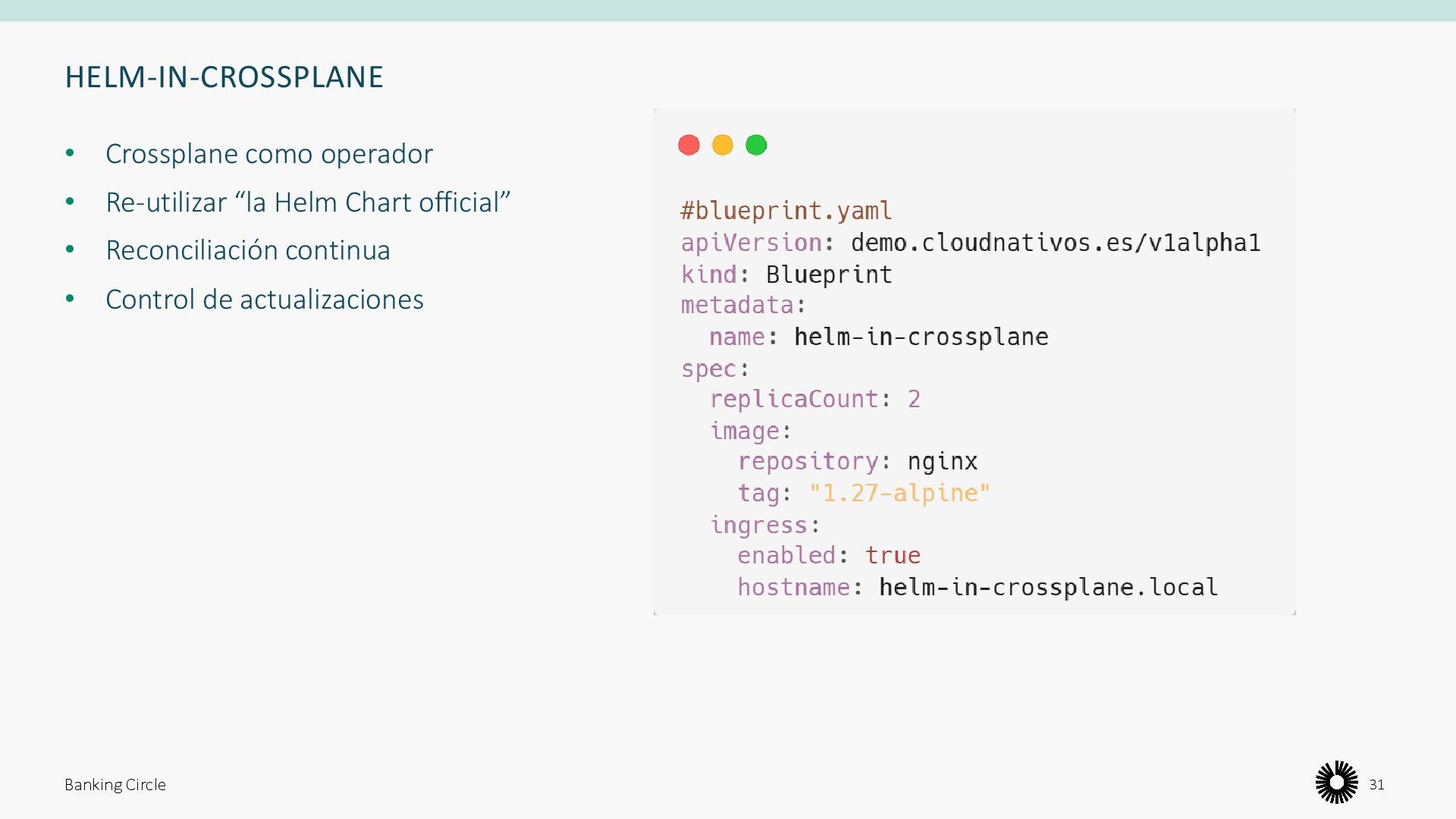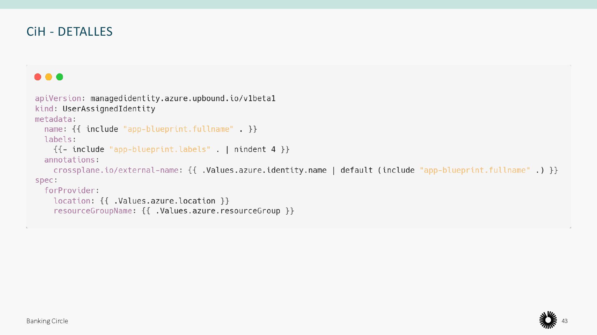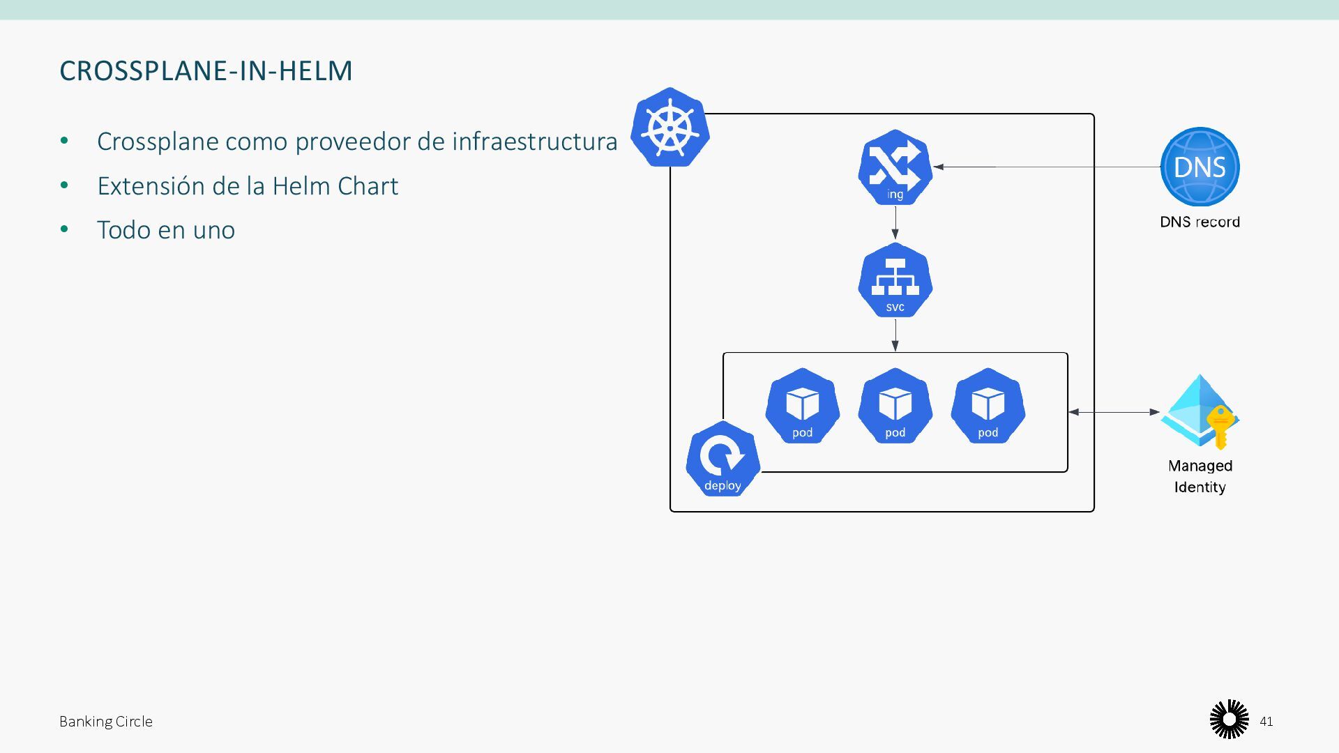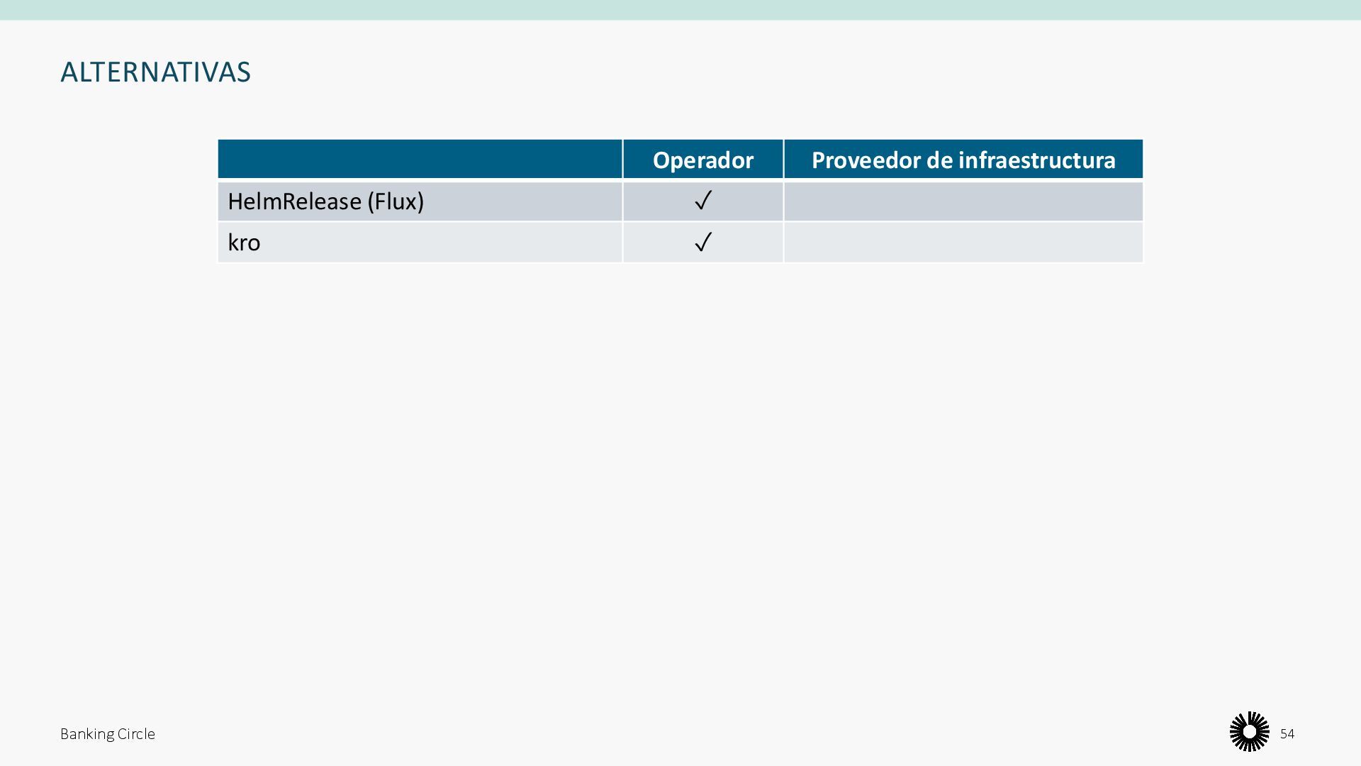 (CiHiC) Infraestructura (DNS, identities) Crear de antemano Todo se crea con la app Actualizaciones • Chart desactualizadas • PRs todos los días Transparentes Solicitudes de ayuda Frecuentes, casi diarias Poco frecuentes 2024 (Sin Crossplane) 2025 (CiHiC) Impacto de una mala release Menor, solo para los early adopters Todas las apps fallan Observability “Sencilla” (pipeline) Necesitamos extraer métricas y logs, y crear alertas