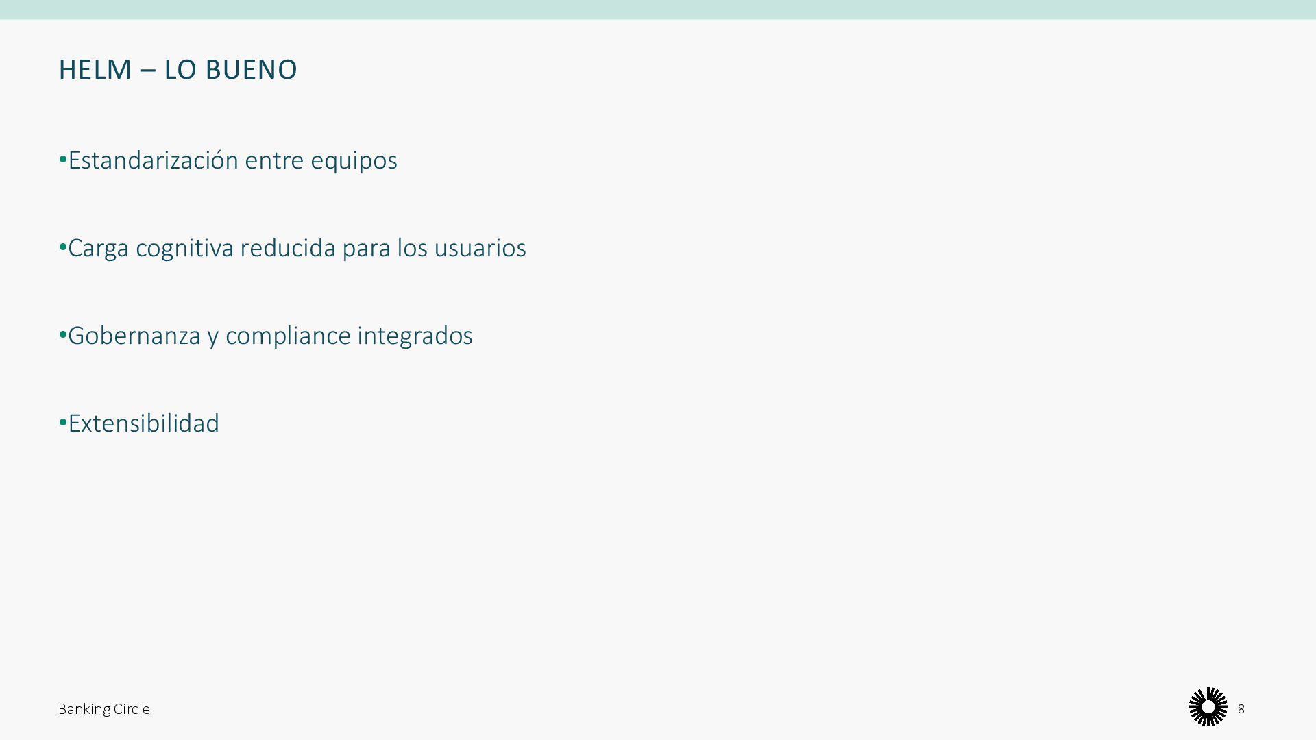 (CiHiC) Infraestructura (DNS, identities) Crear de antemano Todo se crea con la app Actualizaciones • Chart desactualizadas • PRs todos los días Transparentes Solicitudes de ayuda Frecuentes, casi diarias Poco frecuentes