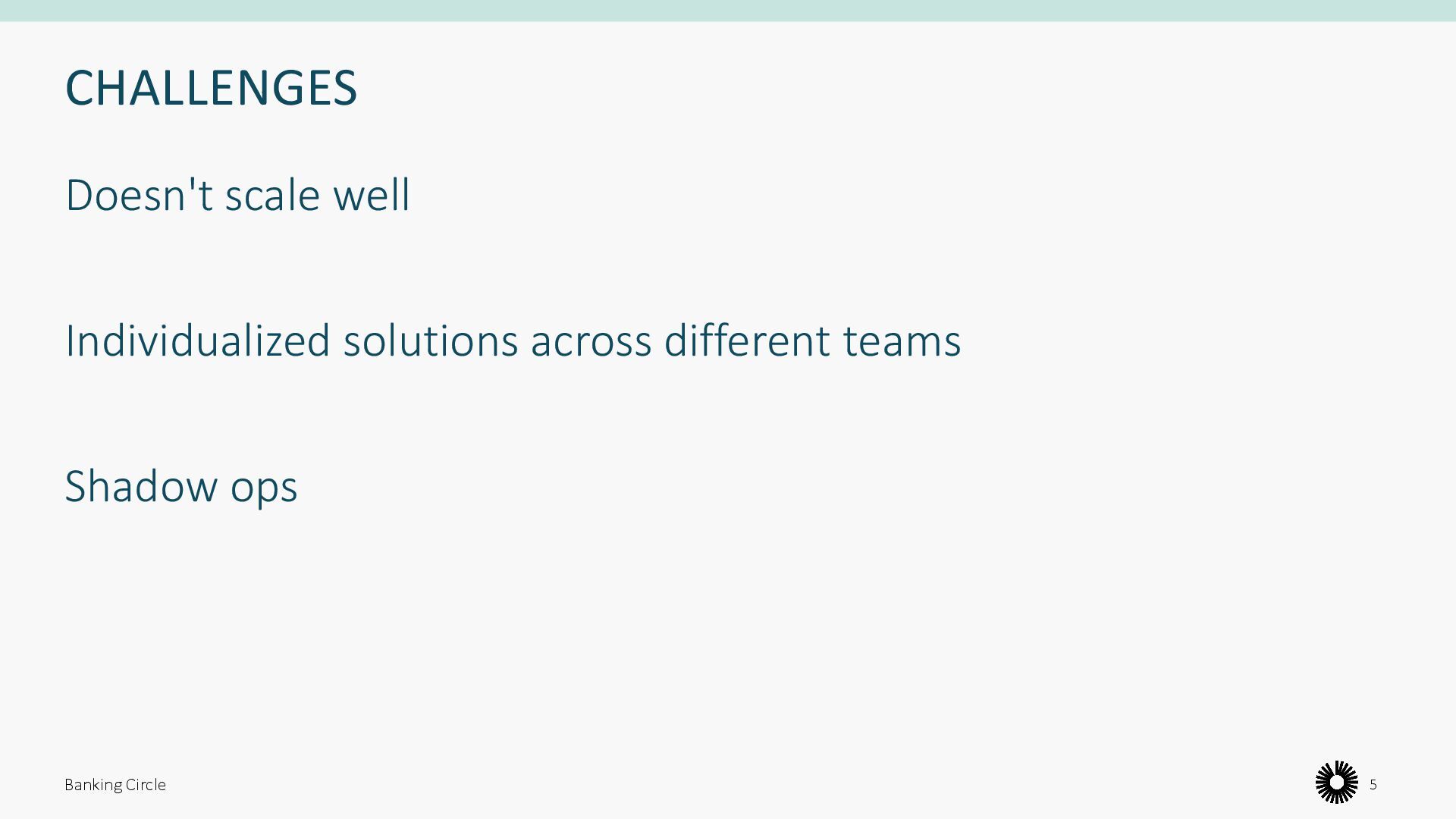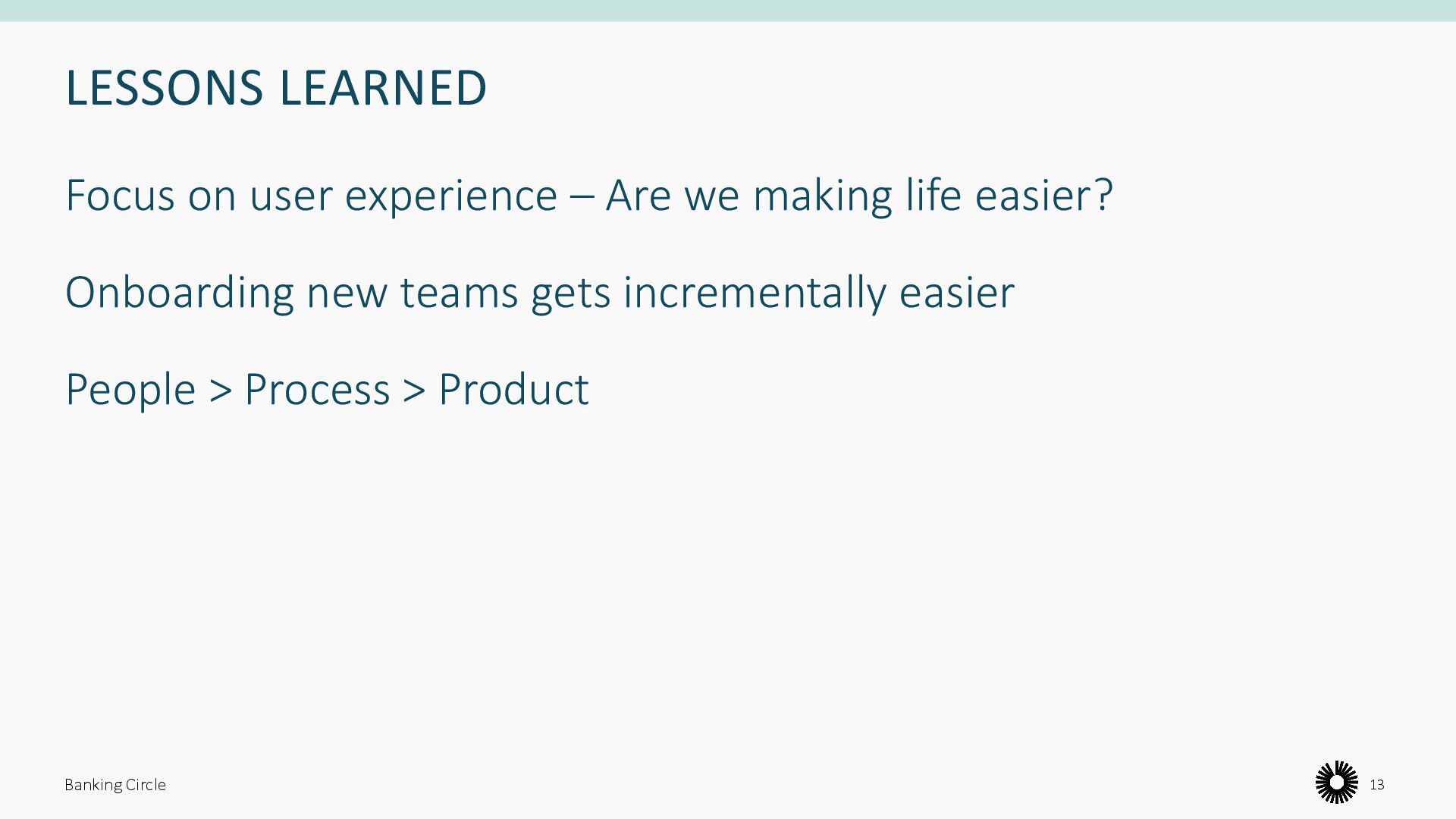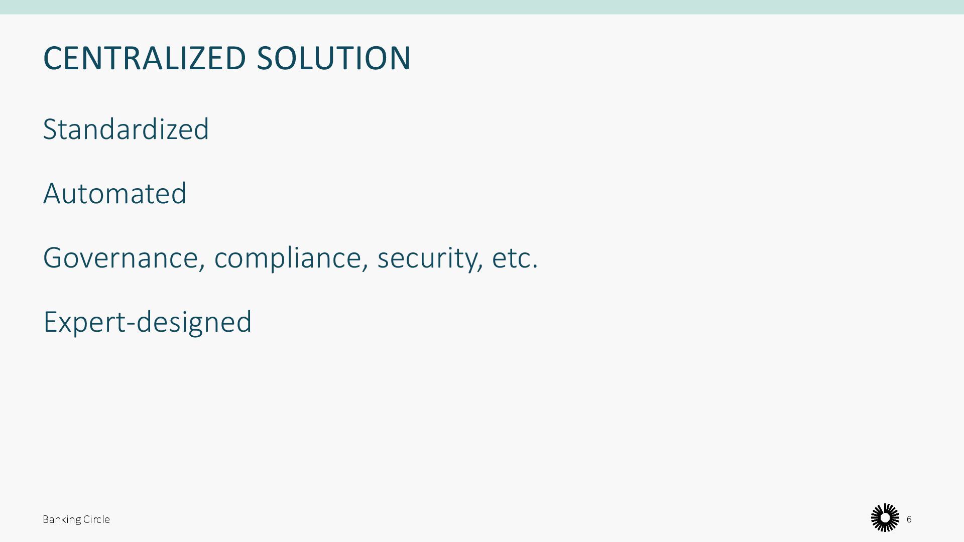 by cloning a reference Git repository Terraform-based solution, using shared modules All changes are introduced in easy-to-read json files Banking Circle 12