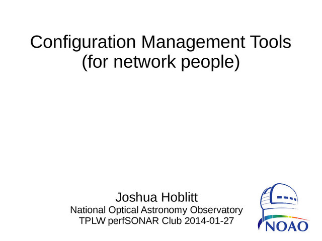 tool for the job – Prior familiarity, Community considerations, etc. • Equipment provider / software may come with modules for a specific tool – Eg, JUNOS bundling a puppet agent • Tools can overlap even on the same host – Example: • Ops managing the core OS with Chef • Dev uses Ansible for app deployment • Space is in considerable flux – May look considerably different 5-10 years from now