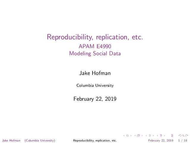 r - h d, f - n - m s & - s - - e n - n, s t e partly blocked and they should endorse these beliefs about the importance of significant results. Table 2 reviews the relevant studies that have been conducted. In the British study mentioned earlier, Oakes (1986, p. 80) asked academic psychologists what a significant result (p = .01) means: Suppose you have a treatment that you suspect may alter performance on a certain task. You compare the means of your control and experimental groups (say, 20 subjects in each sample). Furthermore, suppose you use a simple independent means t-test and your result is significant (t = 2.7, df = 18, p = .01). Please mark each of the statements below as “true” or “false.” “False” means that the statement does not follow logically from the above premises. Also note that several or none of the statements may be correct. (1) You have absolutely disproved the null hypothesis (i.e., there is no difference between the population means). (2) You have found the probability of the null hypothesis being true. (3) You have absolutely proved your experi- mental hypothesis (that there is a difference between the population means). (4) You can deduce the probability of the the numbers in Table 1 are probably underestimates of the true frequency of the replication delusion. A study with members of the Mathematical Psychol- ogy Group and the American Psychological Association (not included in Table 1 because the survey asked dif- ferent kinds of questions) also found that most of them trusted in small samples and had high expectations about the replicability of significant results (Tversky & Kahneman, 1971). A glance into textbooks and editori- als reveals that the delusion was already promoted as early as the 1950s. For instance, in her textbook Dif- ferential Psychology, Anastasi (1958) wrote: “The ques- tion of statistical significance refers primarily to the extent to which similar results would be expected if an investigation were to be repeated” (p. 9). In his Intro- duction to Statistics for Psychology and Education, Nunnally (1975) stated: “If the statistical significance is at the 0.05 level . . . the investigator can be confident with odds of 95 out of 100 that the observed difference will hold up in future investigations” (p. 195). Similarly, former editor of the Journal of Experimental Psychology A. W. Melton (1962) explained that he took the level of significance as a measure of the “confidence that the results of the experiment would be repeatable under the conditions described” (p. 553). The illusion of certainty and Bayesian wishful thinking As I have mentioned, a p value is a statement about the probability of a statistical summary of data, assuming that the null hypothesis is true. It delivers probability, not certainty. It does not tell us the probability that a hypothesis—whether the null or the alternative—is compare the means of your control and experimental groups (say, 20 subjects in each sample). Furthermore, suppose you use a simple independent means t-test and your result is significant (t = 2.7, df = 18, p = .01). Please mark each of the statements below as “true” or “false.” “False” means that the statement does not follow logically from the above premises. Also note that several or none of the statements may be correct. (1) You have absolutely disproved the null hypothesis (i.e., there is no difference between the population means). (2) You have found the probability of the null hypothesis being true. (3) You have absolutely proved your experi- mental hypothesis (that there is a difference between the population means). (4) You can deduce the probability of the experimental hypothesis being true. (5) You know, if you decide to reject the null hypothesis, the probability that you are making the wrong decision. (6) You have a reliable experimental finding in the sense that if, hypothetically, the experi- ment were repeated a great number of times, you would obtain a significant result on 99% of occasions. Each of the six beliefs is false, a possibility explicitly stated in the instruction. Beliefs 1 and 3 are illusions of certainty: significance tests provide probabilities, not certainties. Beliefs 2, 4, and 5 are versions of Bayesian wishful thinking. Belief 2 is incorrect because a p value Jake Hofman (Columbia University) Reproducibility, replication, etc. February 22, 2019 14 / 18