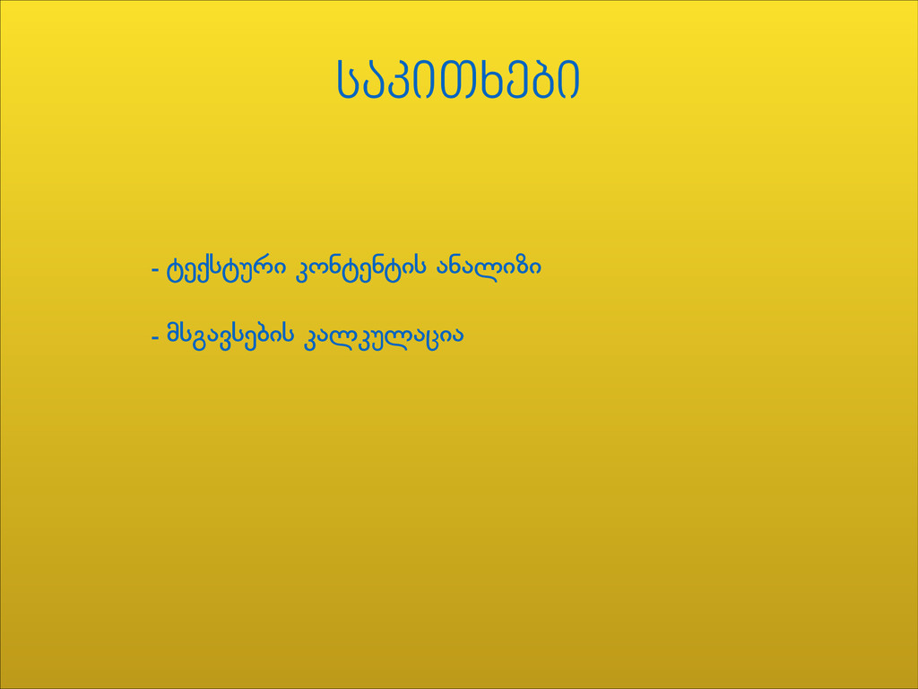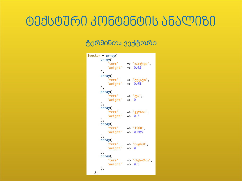 ), array( 'term' => ',&0-,)', 'weight' => 0.65 ), array( 'term' => '5$', 'weight' => 0 ), array( 'term' => '3&%-)$', 'weight' => 0.3 ), array( 'term' => '1960', 'weight' => 0.005 ), array( 'term' => '!$2%$!', 'weight' => 0 ), array( 'term' => ')-,"%)$', 'weight' => 0.5 ), ); ტექსტური კონტენტის ანალიზი ,&%!)+.$ 3&0,"%)