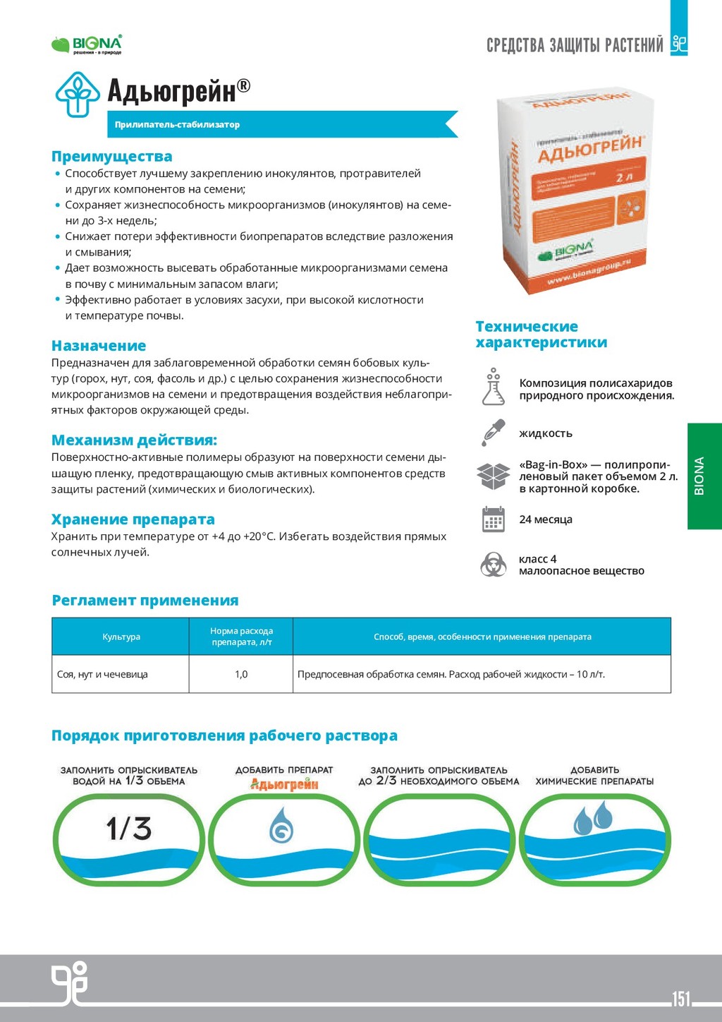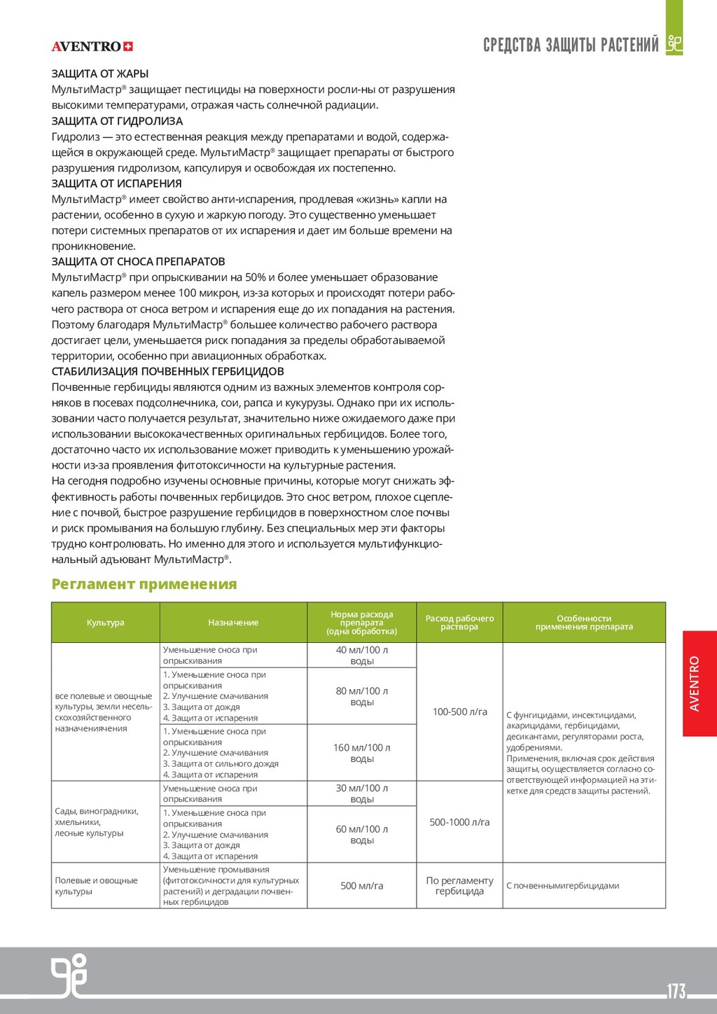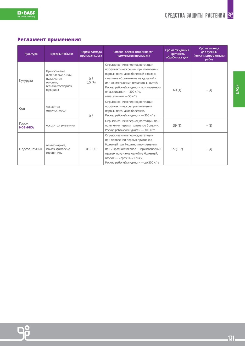 ВЕЩЕСТВ В РАСТЕНИЯХ Многочисленные факторы влияют на способность растений поглощать питательные и другие вещества. Поэтому при определенных условиях у растений могут возникнуть проблемы с поглощением питательных речовны из почвы. К тому же, при внекорневой обработке как питательными веществами так и средствами защиты растений для обеспечения эффективности обработки необходимо быстрое усвоение действующих веществ. КАЧЕСТВО ПЛОДОВ В настоящее время рентабельность сельского хозяйства зависит не только от объема полученного урожая, но и от его качества. Качество фруктов и овощей определяется несколькими параметрами, включая размер, здоровое состояние и группу органолептических характеристик, которые приобретаются во время созревания и делают плоды аппетитными (цвет, вкус, аромат и структура). Другие показатели, такие как однородность и раннее созревание, также важны для про- изводителя с точки зрения рыночных условий. Регламент применения Культура Норма расхода препарата (одна обработка) ТЕРРА-СОРБ®ФОЛИАР Норма расхода препарата (одна обработка) ТЕРРА-СОРБ®КОМПЛЕКС Сроки применения Биологическая эффективность Озимый рапс 9,0 л/т 5,4 л/т Предпосевная обработка семенного материала. Лучшая всхожесть и повышение урожайности 2,0–3,0 л/га 1,2–2,0 л/га Осень: вместе с регуляторами роста, если дневная температура минимум +8 ° С. Без регуляторов ро- ста, если дневная температура не ниже + 5 ° С. Улучшенная зимостойкость и развитая корне- вая система, жизнеспособность и энергия отрастания весной. 2,0–3,0 л/га 1,2–2,0 л/га Весна: при возобновлении вегетации и наличии листовой массы в баковых смесях с запланиро- ванными обработками. Повышение жизнеспособности и энергии отрастания при пониженных температурах весной. Образование большего количества ветвей. В период бутонизации вместе с инсектицидными обработками. Улучшение цветения и опыления, закладка большего количества стручков. Озимые пшениця, ячмень, рожь 3,0 л/т 1,8 л/т Предпосевная обработка семенного материала. Лучшая всхожесть и повышение урожайности 1,0–3,0 л/га 0,6–2,0 л/га Осень от фазы 3-х листьев до начала фазы куще- ния, при дневной температуре не ниже + 5 ° С. Лучшие кущение и зимостойкость. Повышенная энергия отрастания весной. 1,0–3,0 л/га 0,6–2,0 л/га Весна: при возобновлении вегетации, в баковых смесях с запланированными обработками. Усиление кущения, повышенная эффективность обработок. Увеличение количества зерен в колосе. Вместе с фунгицидами по флаговому листу. Поддержка флагового листа и цветения. Яровой рапс 2,0–3,0 л/га 1,2–2,0 л/га Вместе с гербицидами в начале роста стебля (4-5 листьев). Снятие стресса от гербицидов и повышения урожайности. 1,0–3,0 л/га 0,6–2,0 л/га В период бутонизации вместе с инсектицидными обработками. Улучшение цветения и опыления, з акладки большего количества стручков. Яровые пшеница, ячмень, рожь 3,0 л/т 1,8 л/т Предпосевная обработка семенного материала. Лучшая всхожесть и повышение урожайности 1,0–3,0 л/га 0,6–2,0 л/га В ранние фазы кущения вместе с запланирован- ными обработками. Вмомент смыкания междурядий или вместе с поздними обработками фунгицидами. Сахарная свекла 2,0–3,0 л/га 1,2–2,0 л/га Фаза 4-8 листьев. Преодоление стресса от воздействия гербицидов и неблагоприятных условий роста. Для обработки после гербицидов нужно дождаться отмирания сорняков. Можно сочетать с л