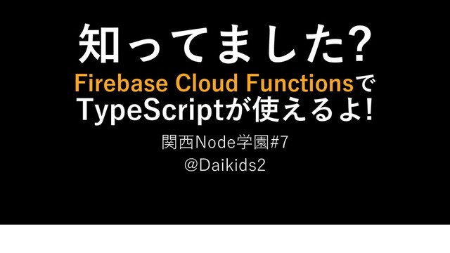 知ってました? Firebase Cloud Functionsで TypeScriptが使えるよ! 関⻄Node学園#7 @Daikids2