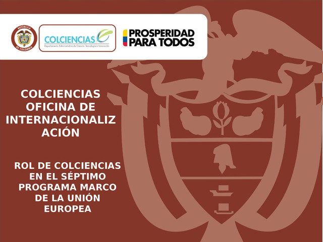 en 7PM • Participación actual de Colombia en 7PM • Participación de Colciencias en 7PM • Participación de Colciencias en la Iniciativa Conjunta de Investigación e Innovación • Horizonte 2020 Indice Indice
