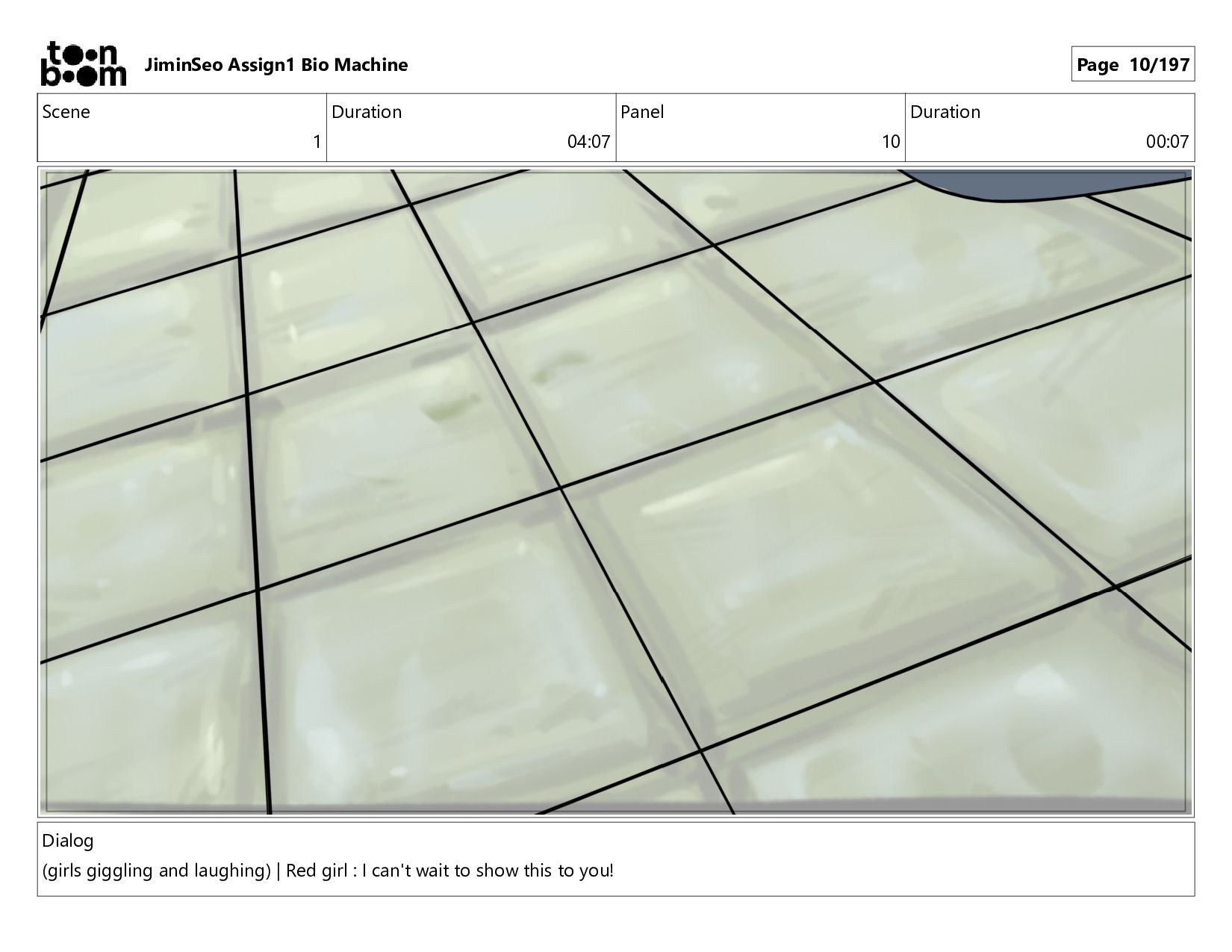 Scene 1 Duration 04:07 Panel 10 Duration 00:07 Dialog (girls