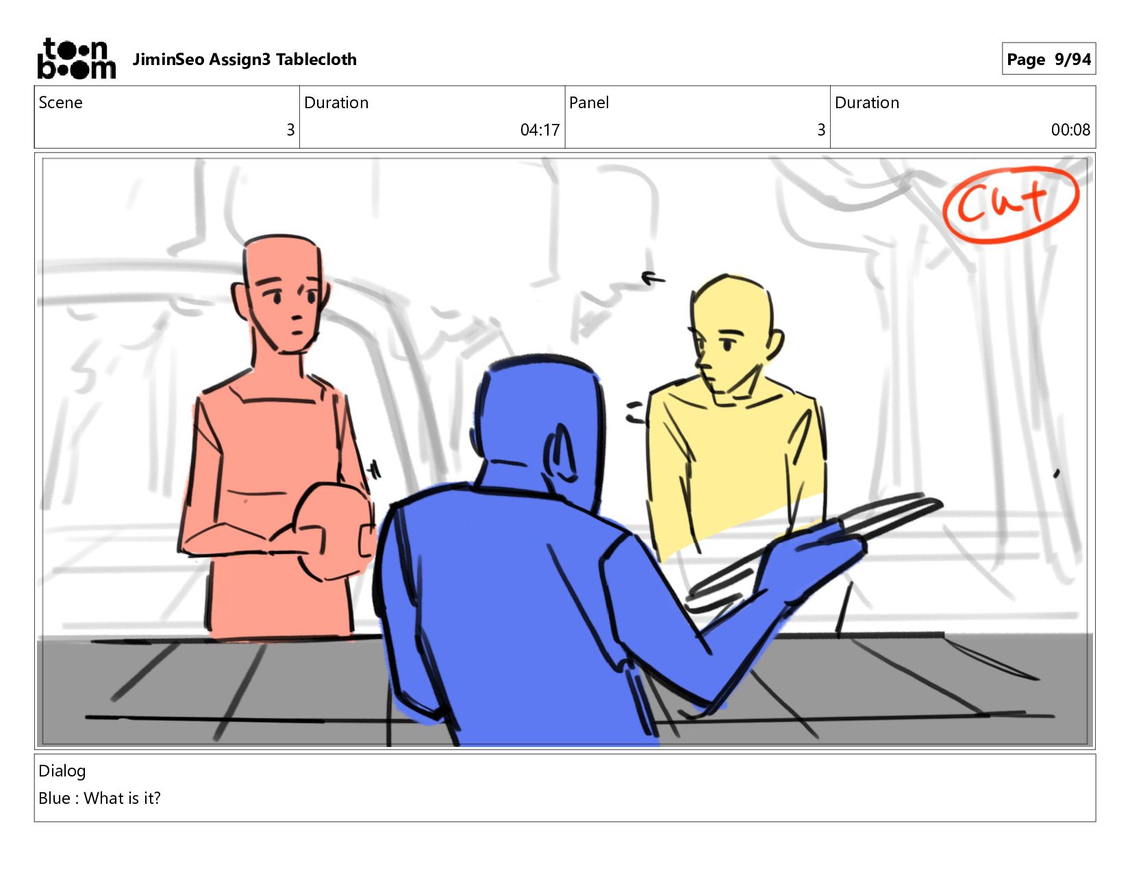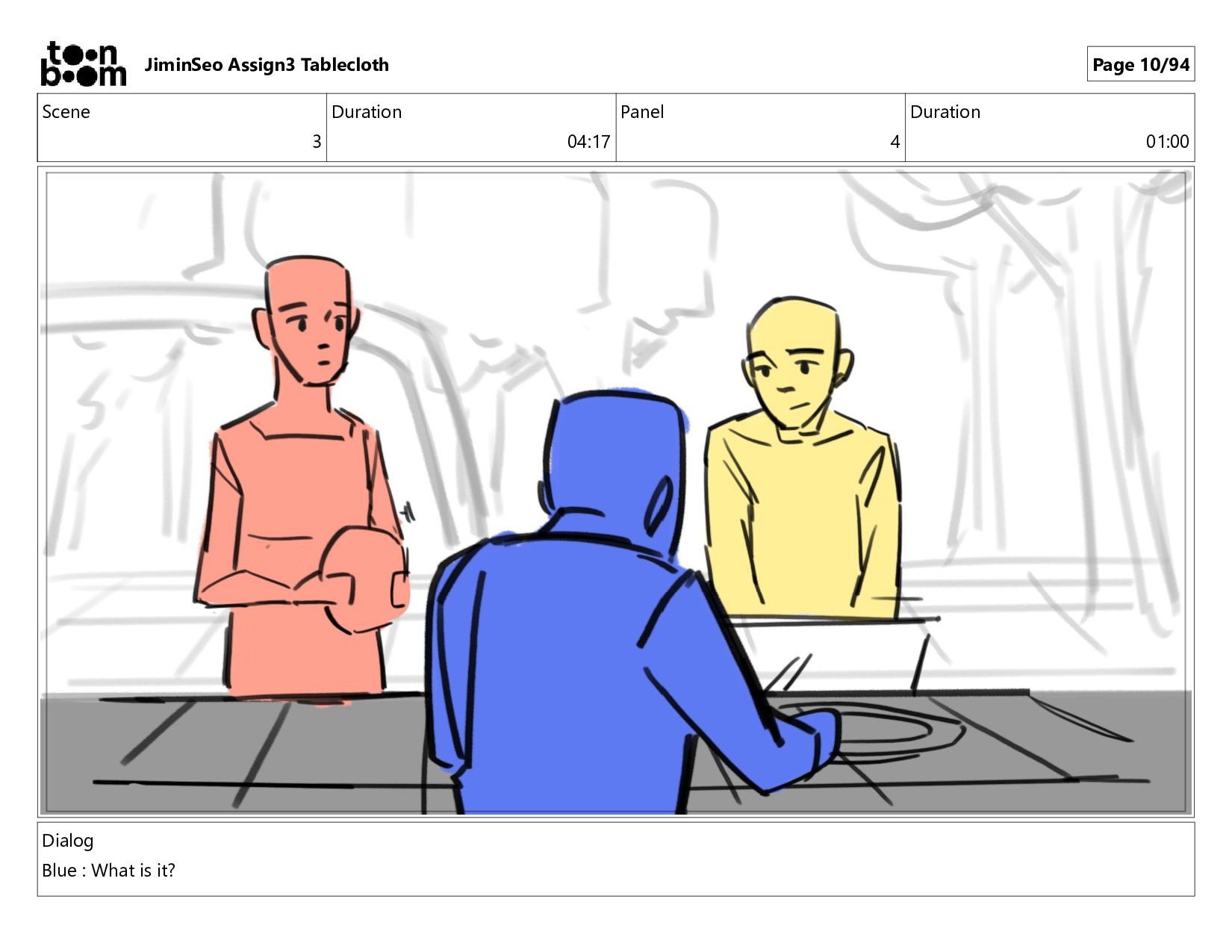 Scene 3 Duration 04:17 Panel 3 Duration 00:08 Dialog Blue