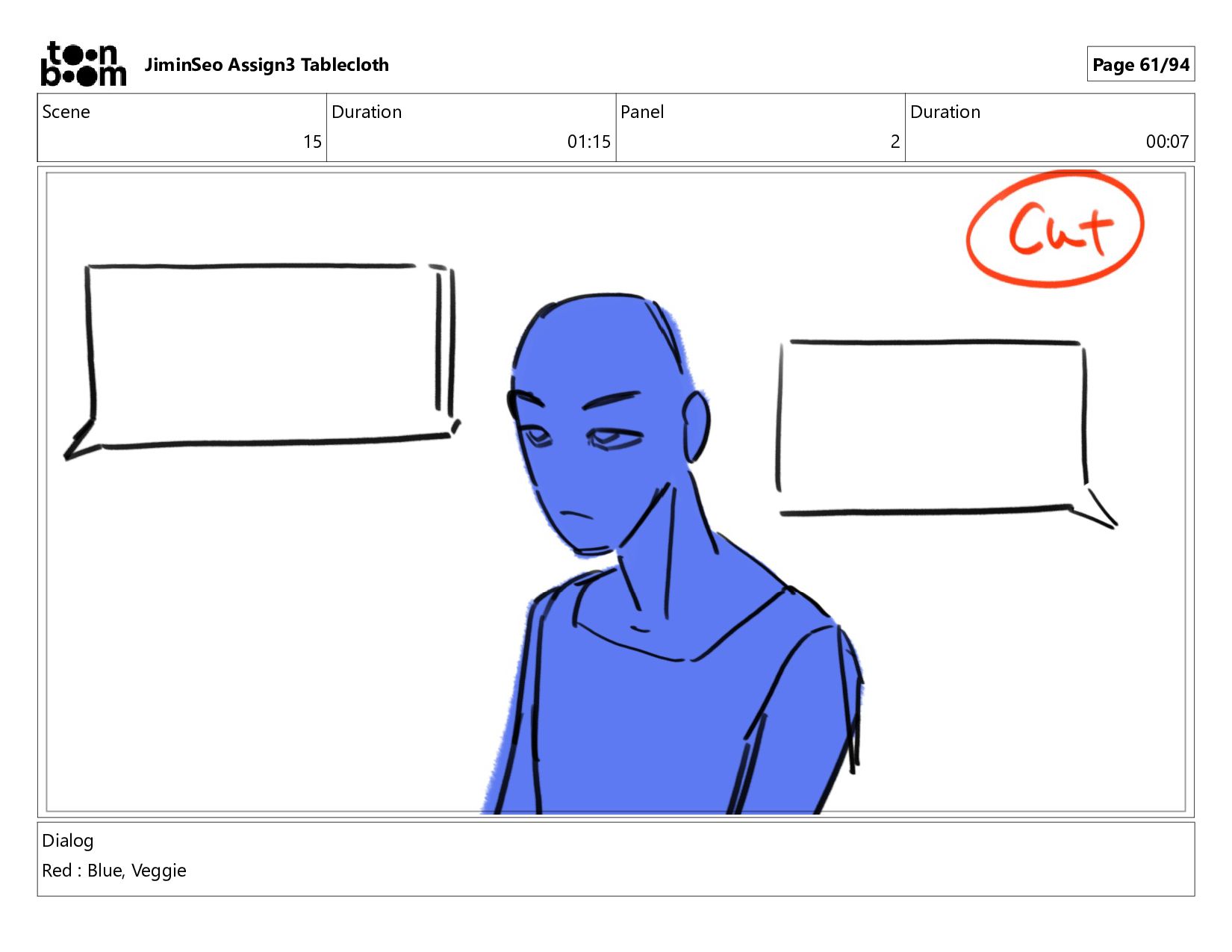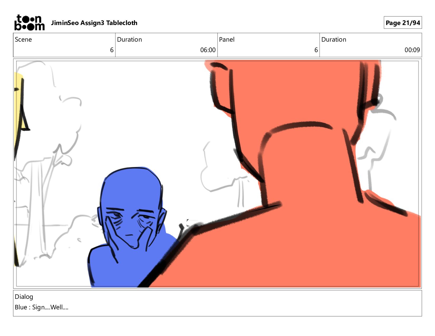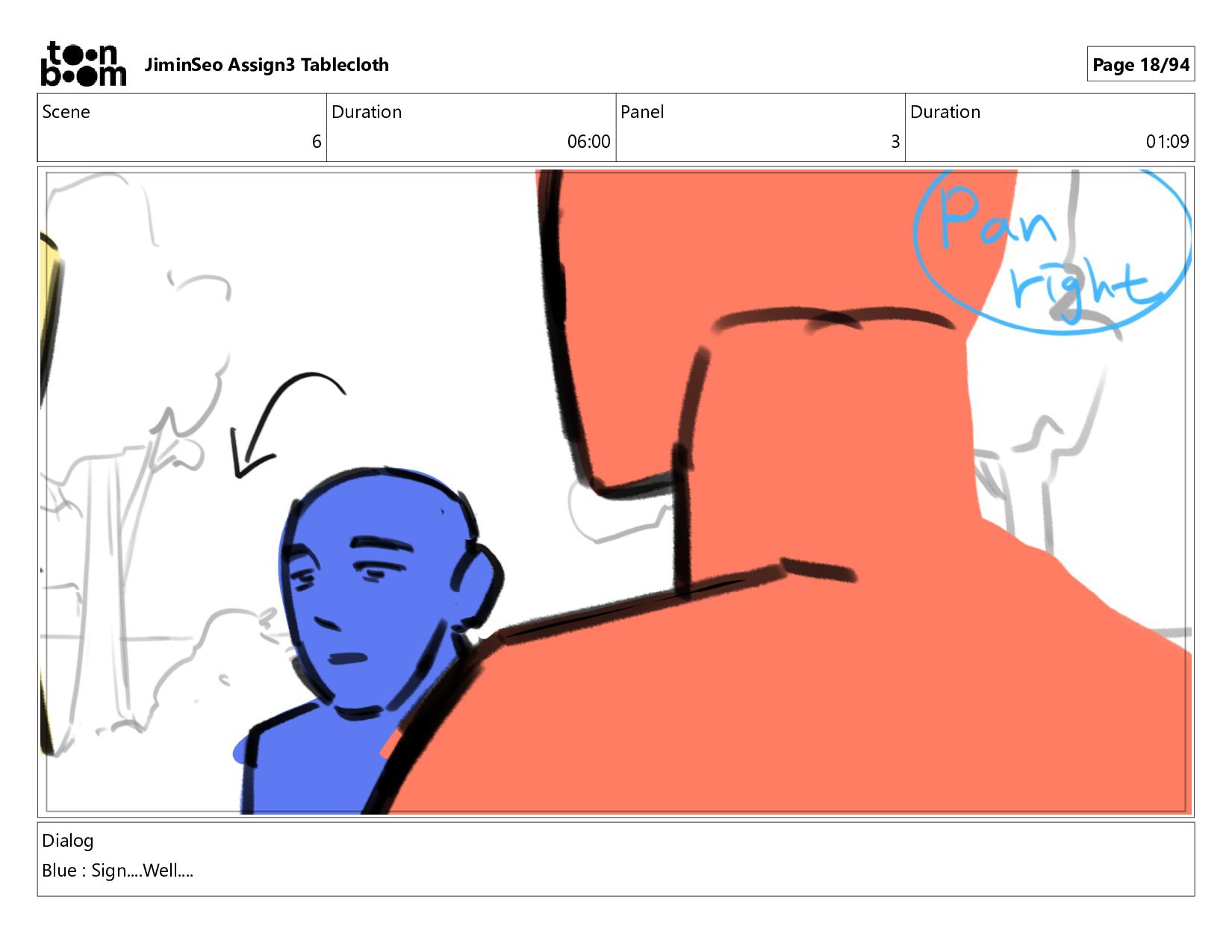 Scene 3 Duration 04:17 Panel 5 Duration 01:09 Dialog Blue