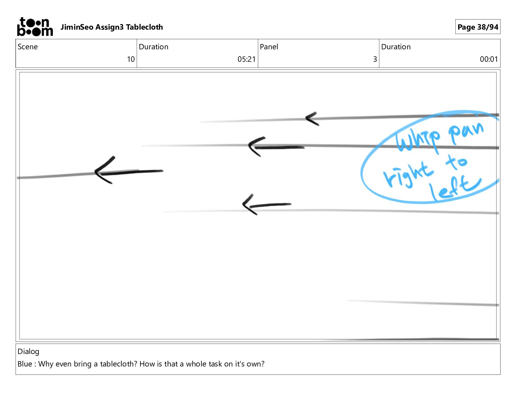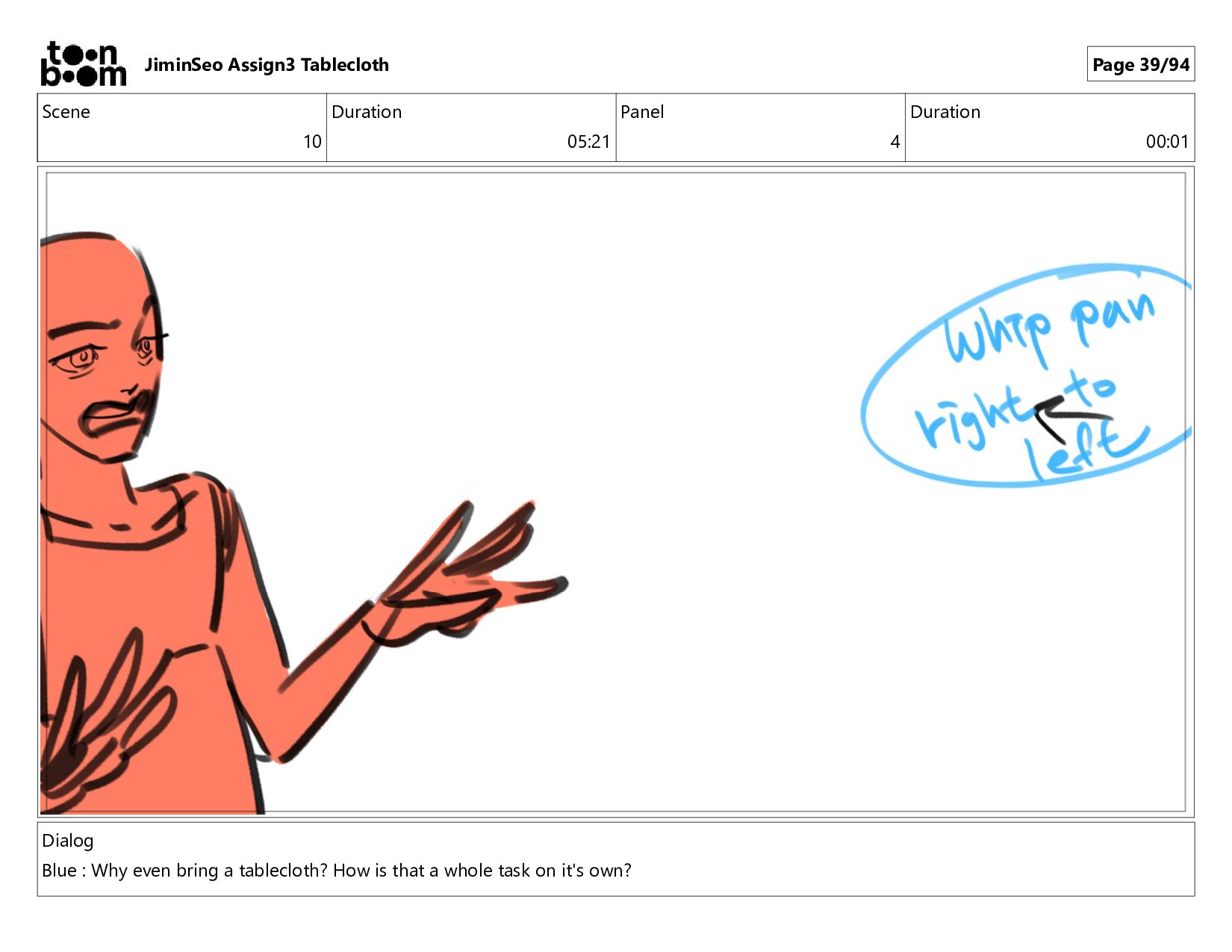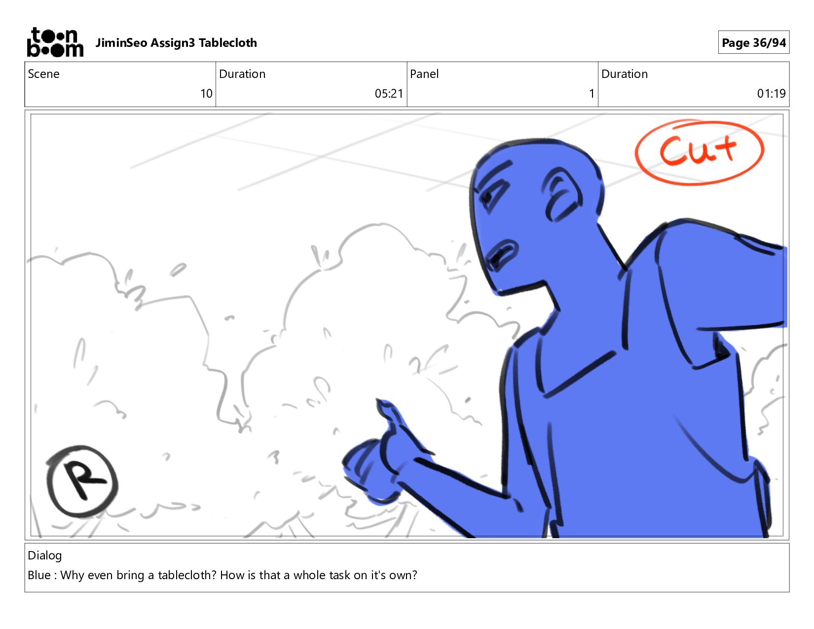 Scene 3 Duration 04:17 Panel 5 Duration 01:09 Dialog Blue