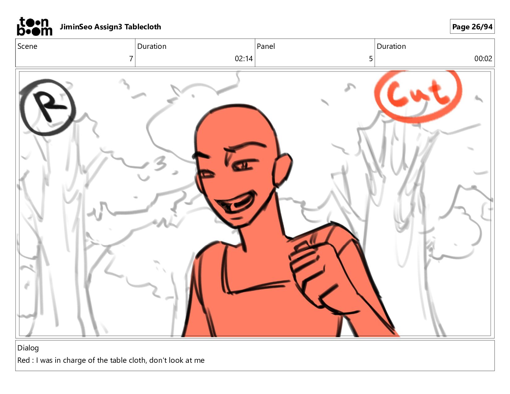 Scene 14 Duration 02:05 Panel 3 Duration 00:09 Dialog Red