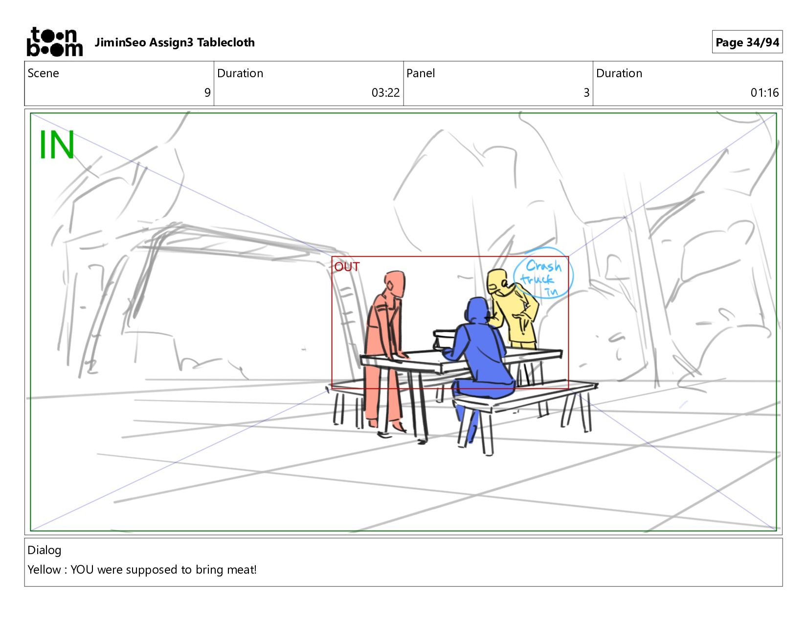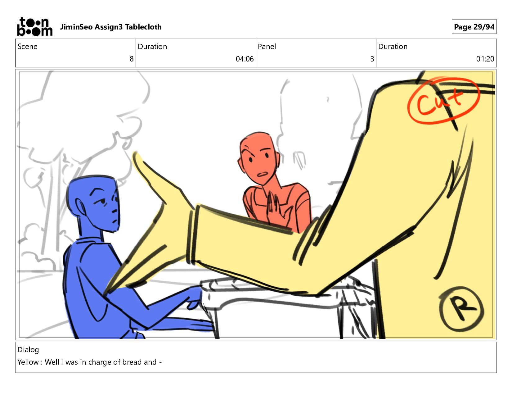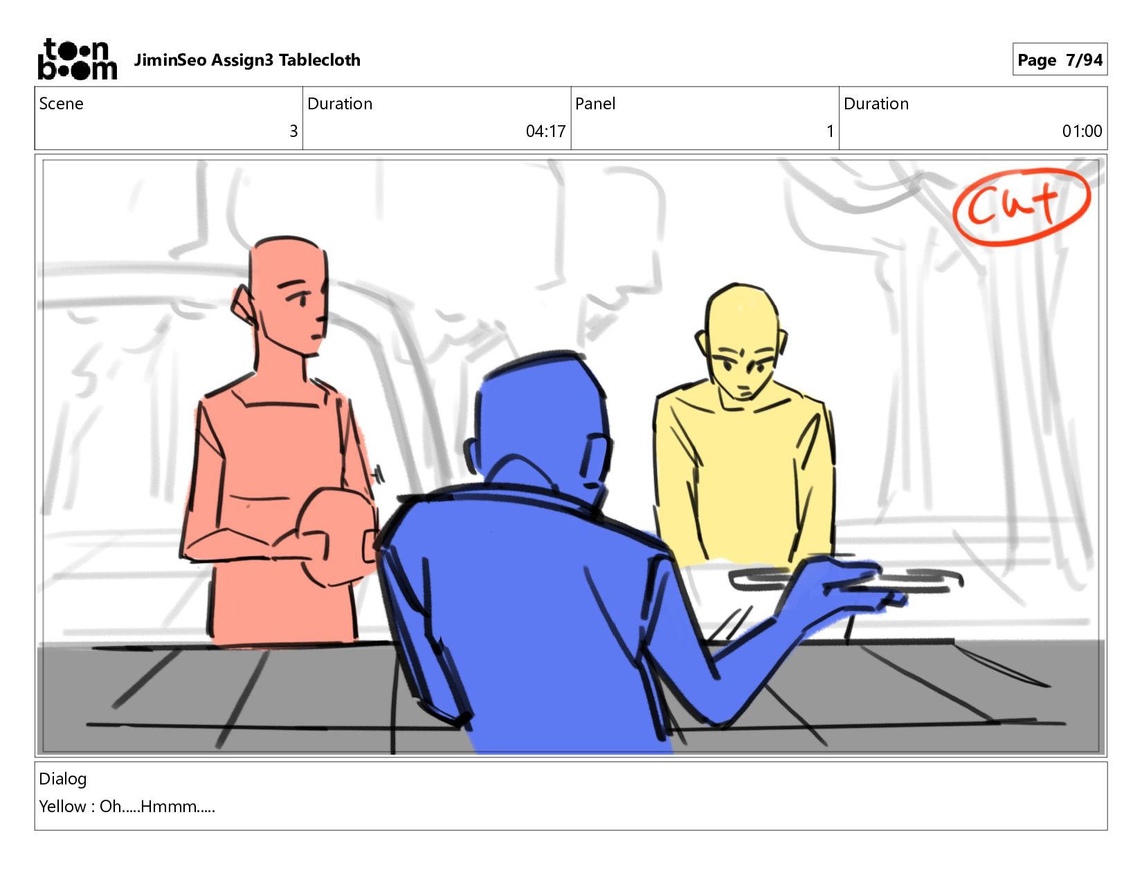 : All I can make is a salad with giant croutons! / Yellow : It's okay, we still have enough to work with..! JiminSeo Assign3 Tablecloth Page 73/94