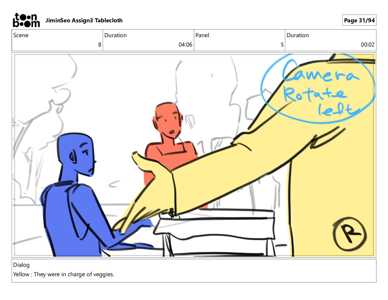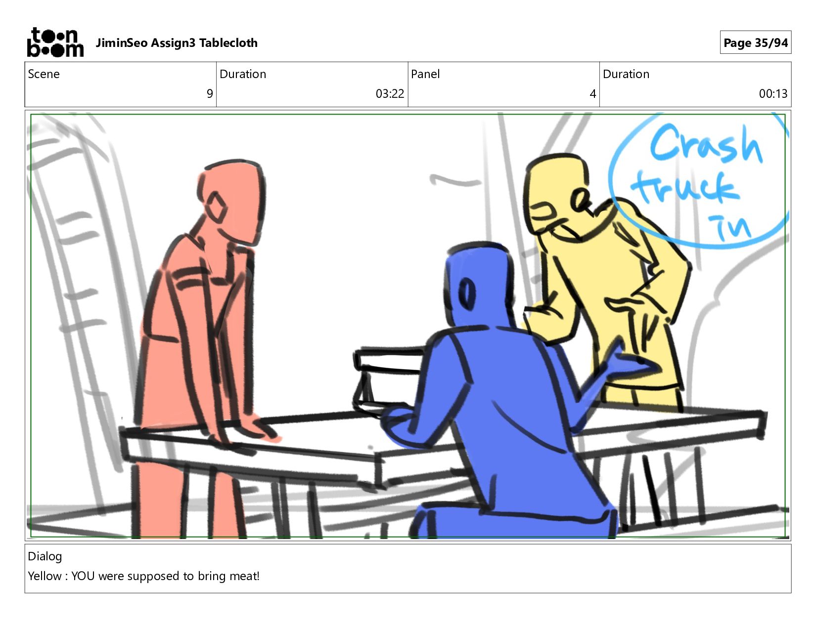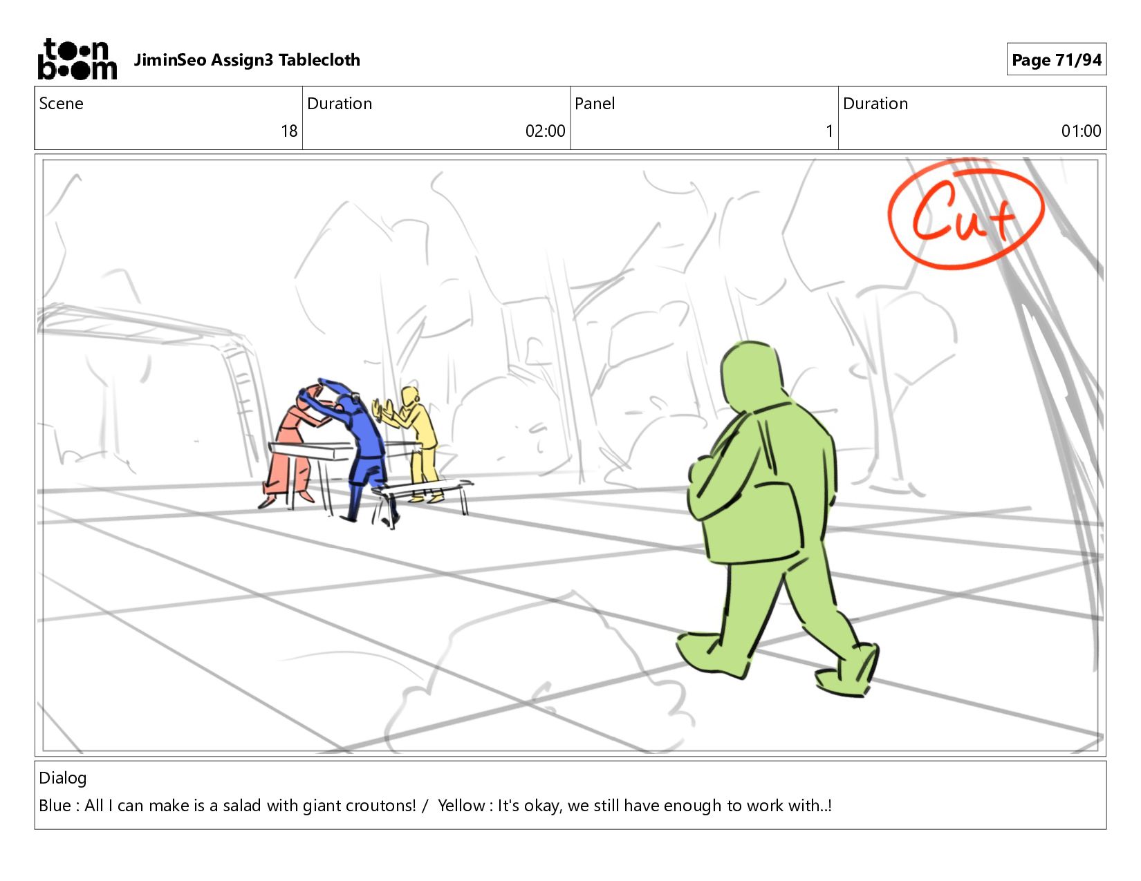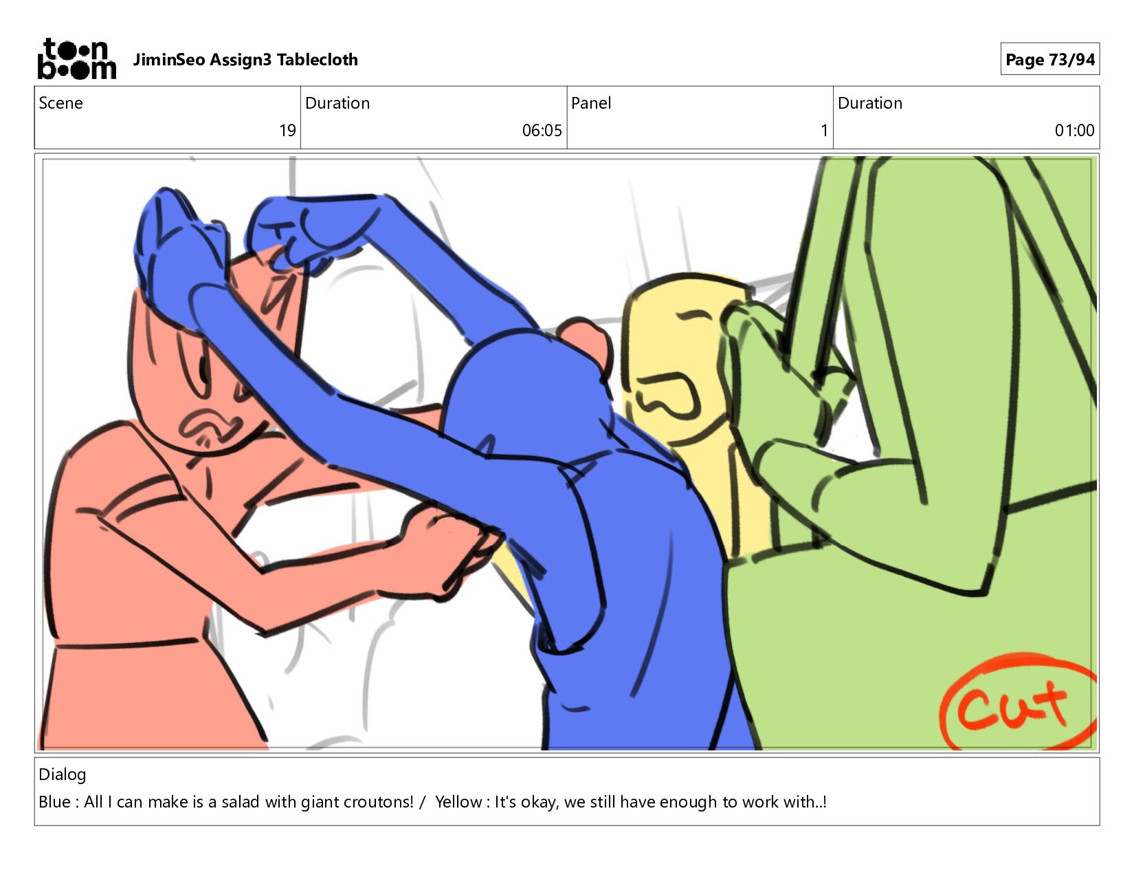 : All I can make is a salad with giant croutons! / Yellow : It's okay, we still have enough to work with..! JiminSeo Assign3 Tablecloth Page 71/94