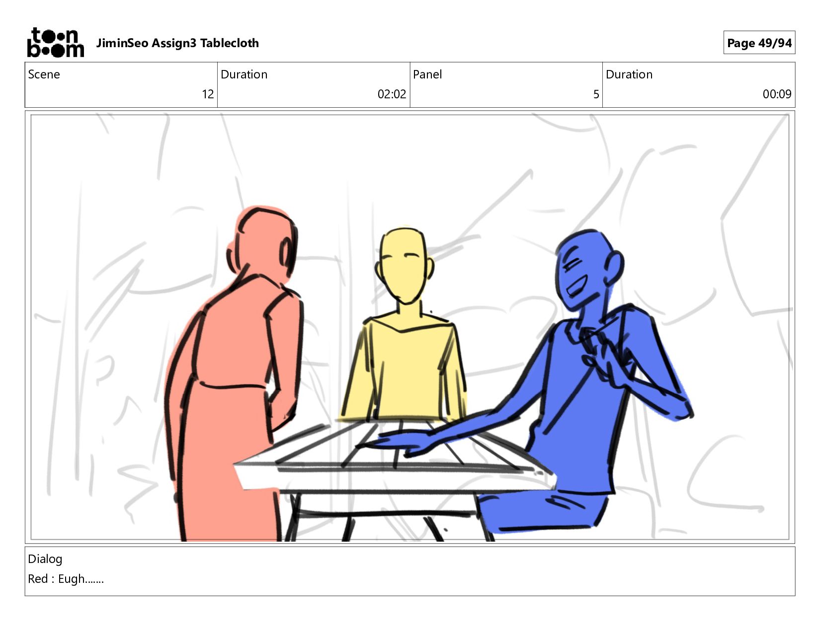 Scene 12 Duration 02:02 Panel 5 Duration 00:09 Dialog Red