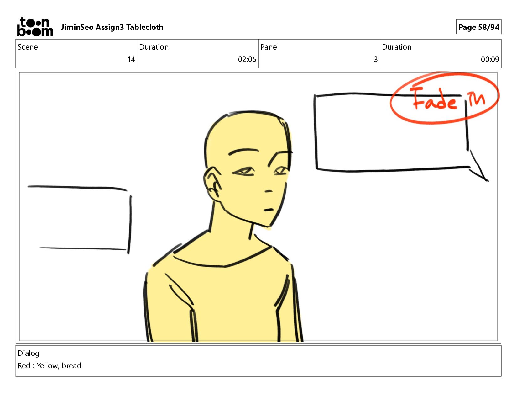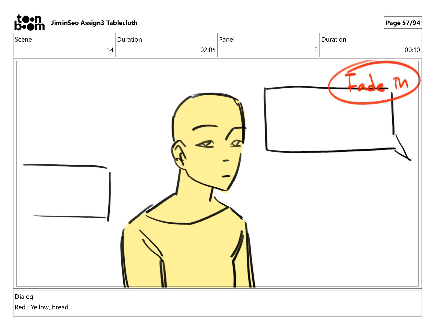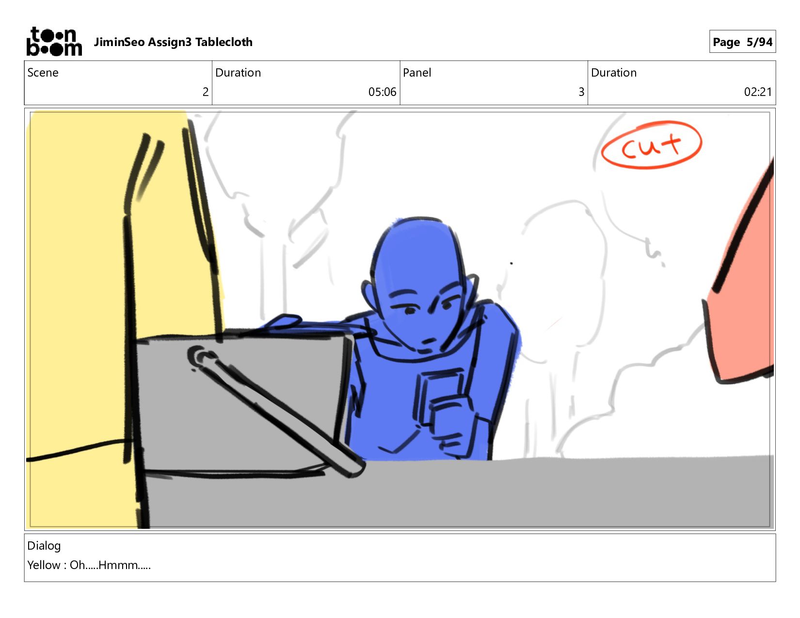 Scene 2 Duration 05:06 Panel 3 Duration 02:21 Dialog Yellow