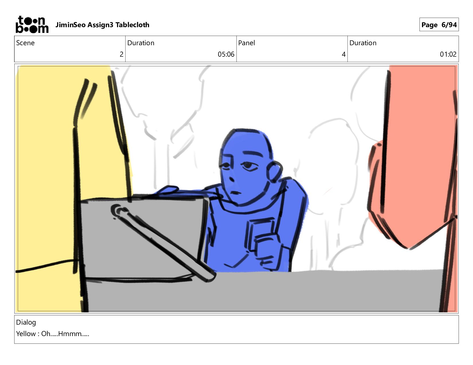 Scene 2 Duration 05:06 Panel 4 Duration 01:02 Dialog Yellow