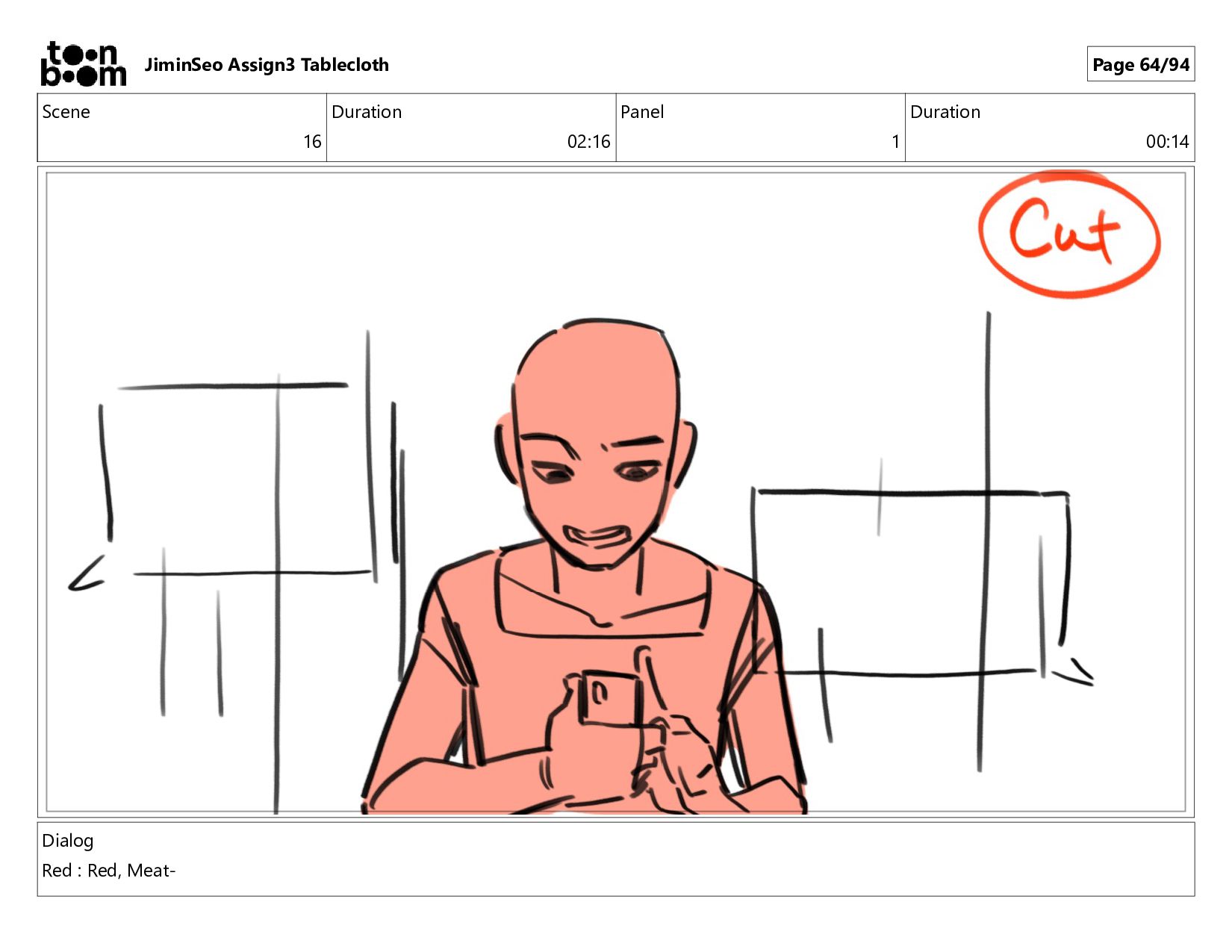 Scene 16 Duration 02:16 Panel 4 Duration 01:00 Dialog Red