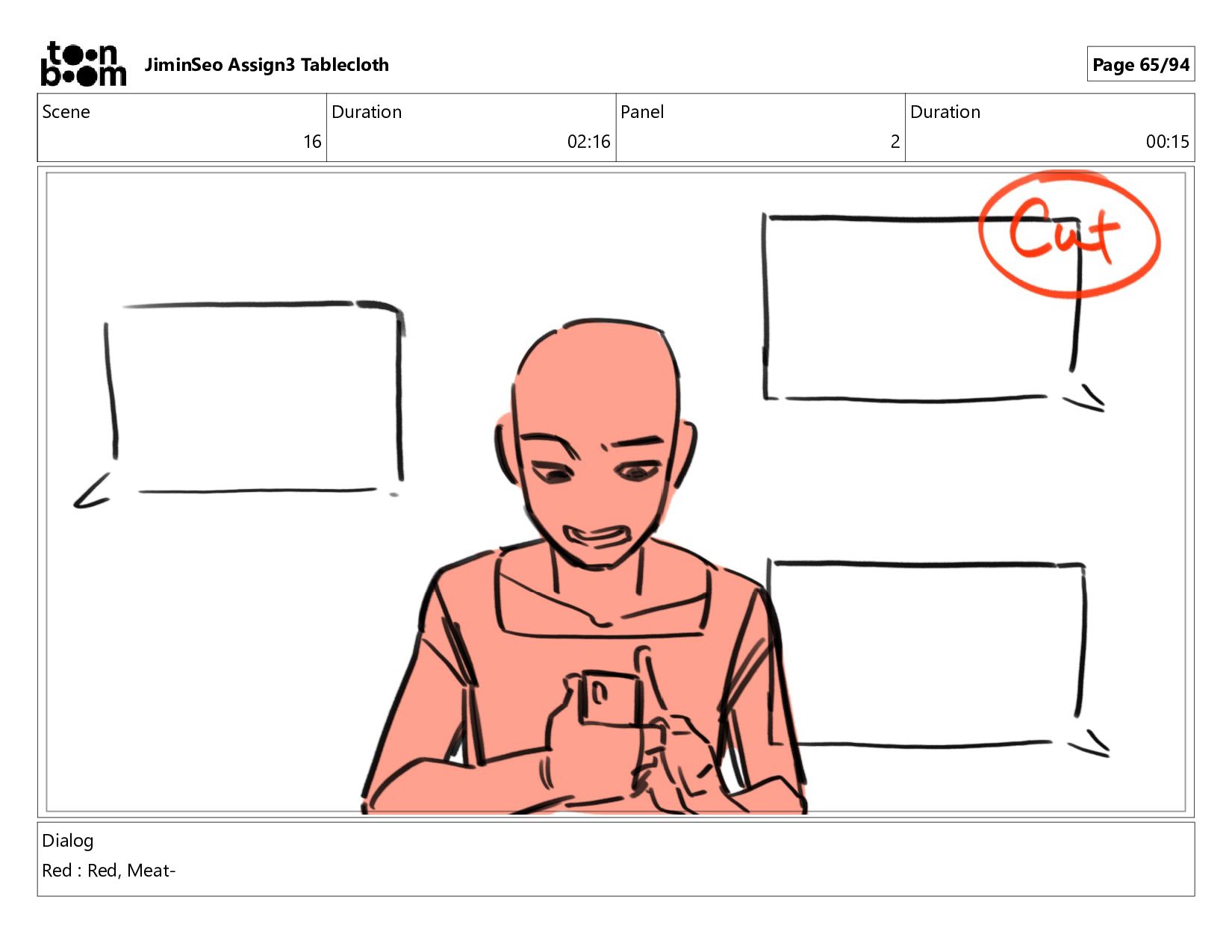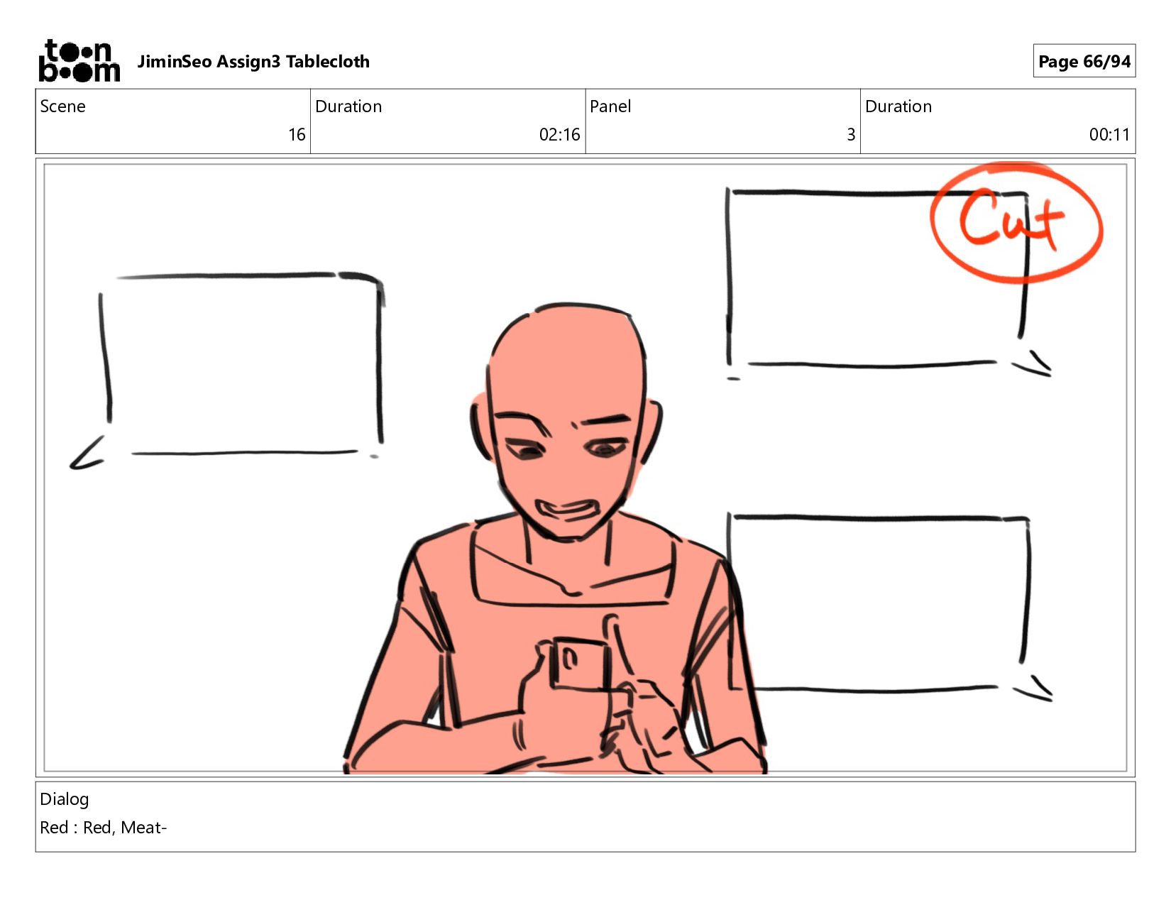 Scene 16 Duration 02:16 Panel 3 Duration 00:11 Dialog Red