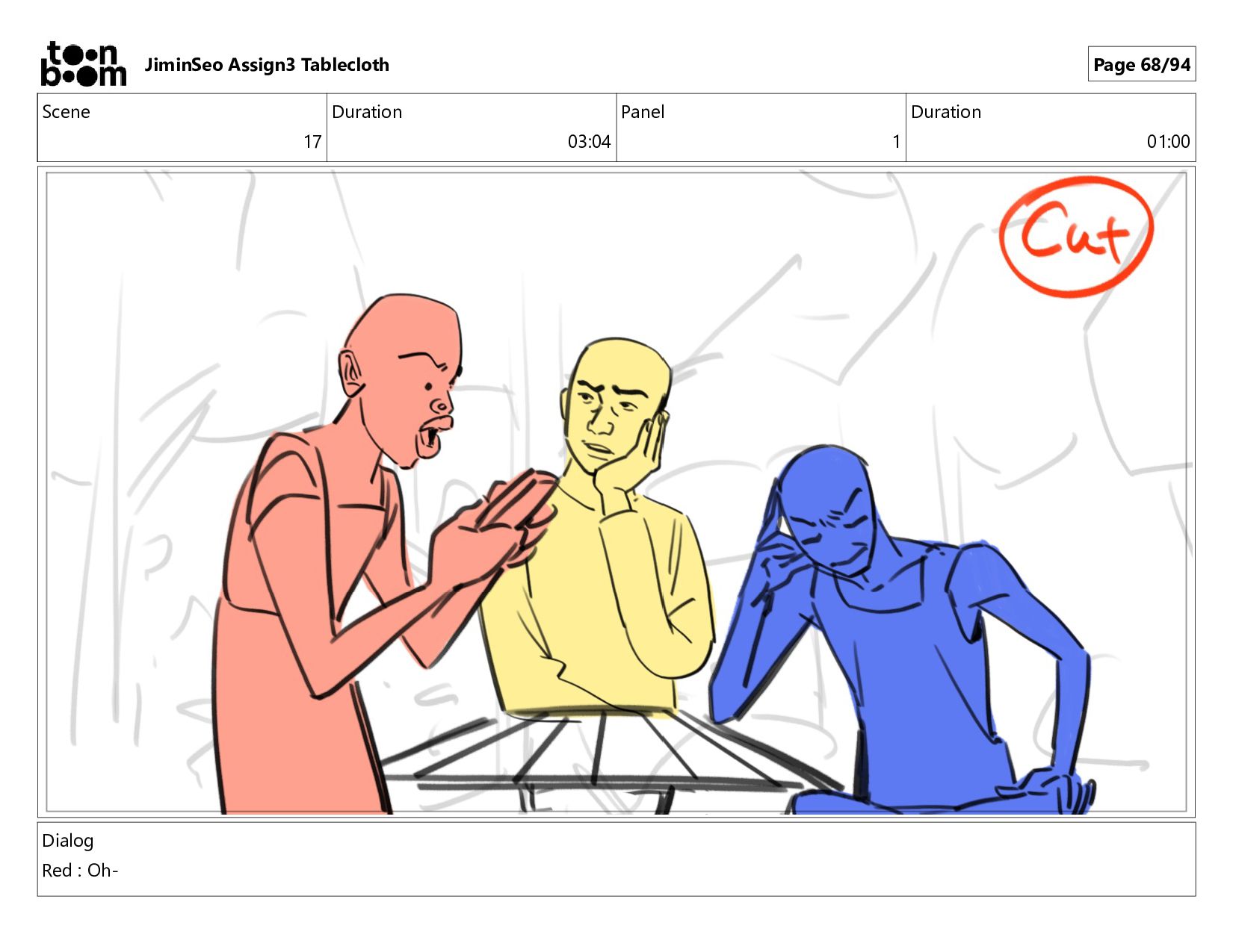 Scene 17 Duration 03:04 Panel 1 Duration 01:00 Dialog Red