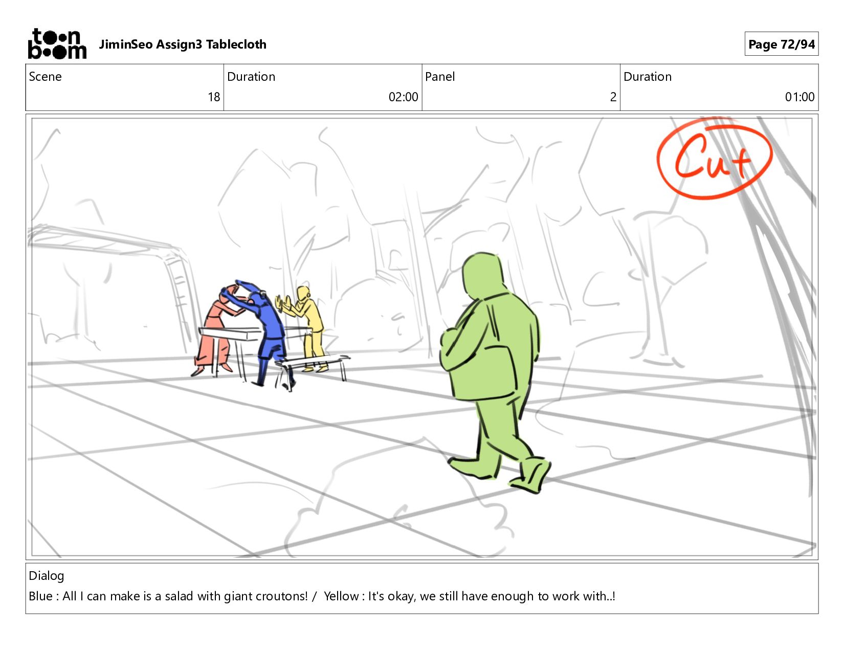 : All I can make is a salad with giant croutons! / Yellow : It's okay, we still have enough to work with..! JiminSeo Assign3 Tablecloth Page 72/94