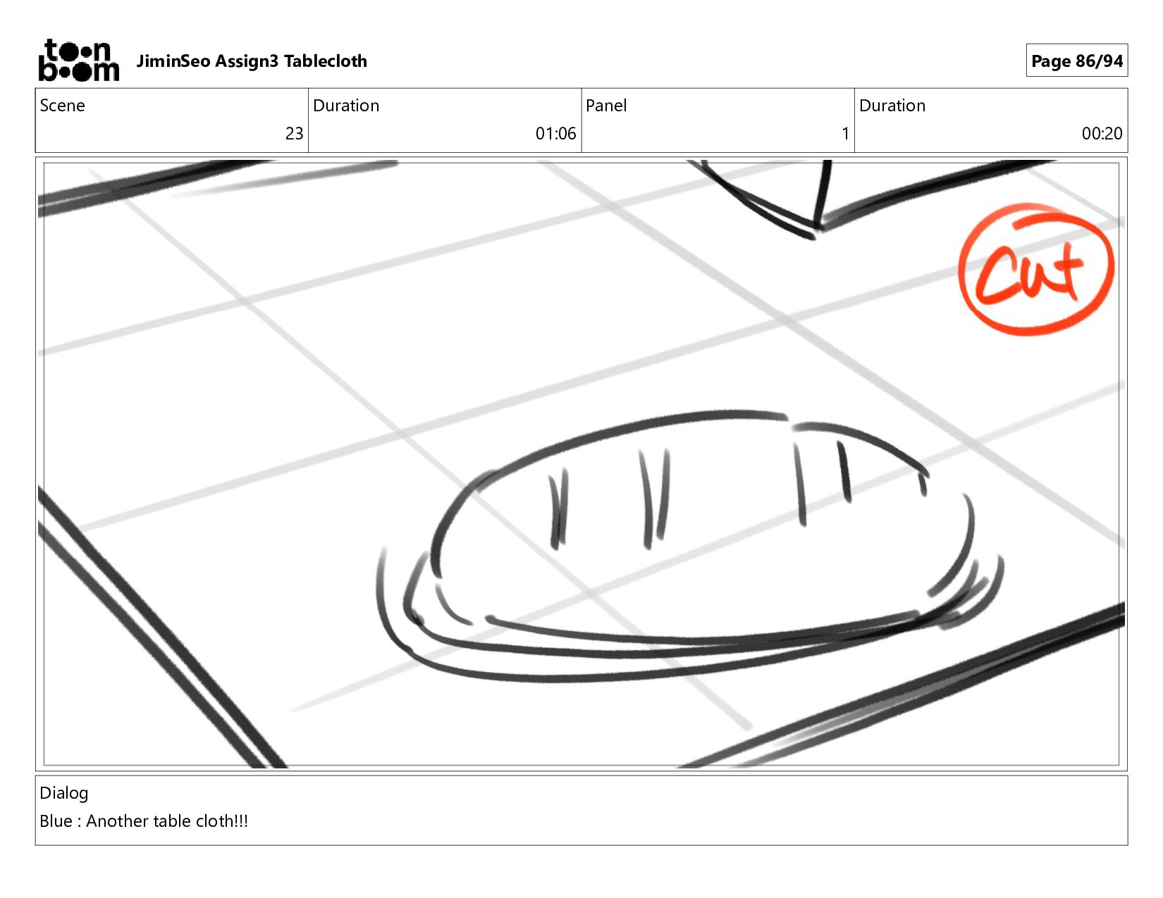 Scene 23 Duration 01:06 Panel 1 Duration 00:20 Dialog Blue