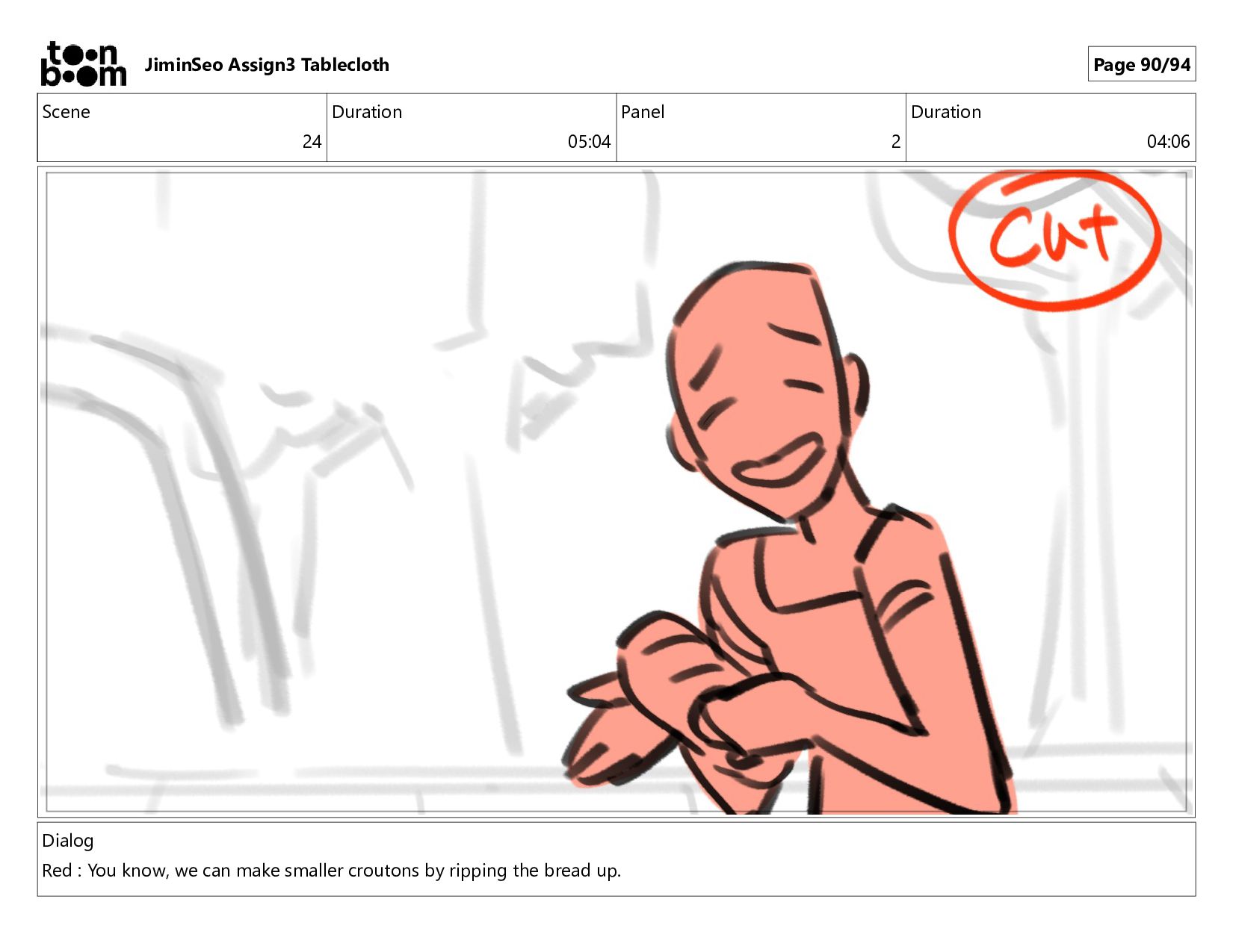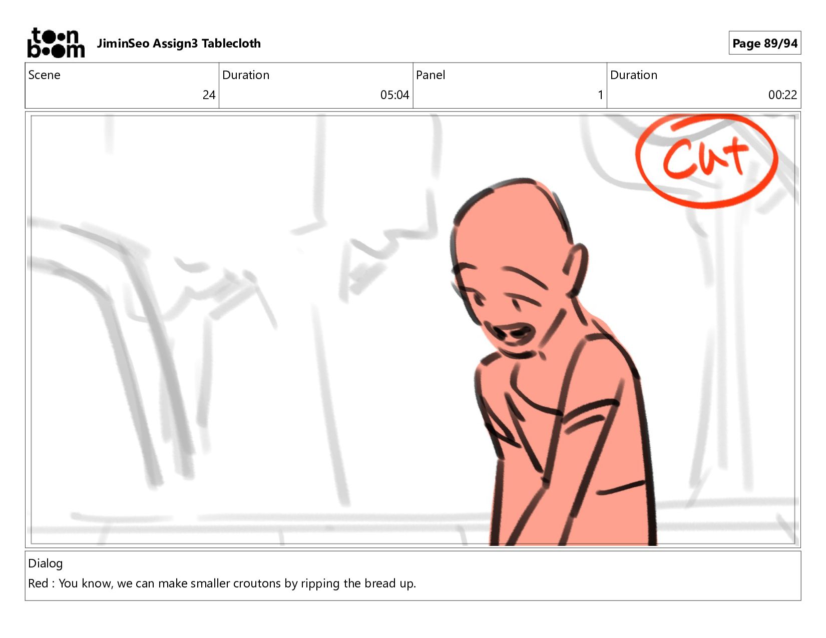 : You know, we can make smaller croutons by ripping the bread up. JiminSeo Assign3 Tablecloth Page 90/94