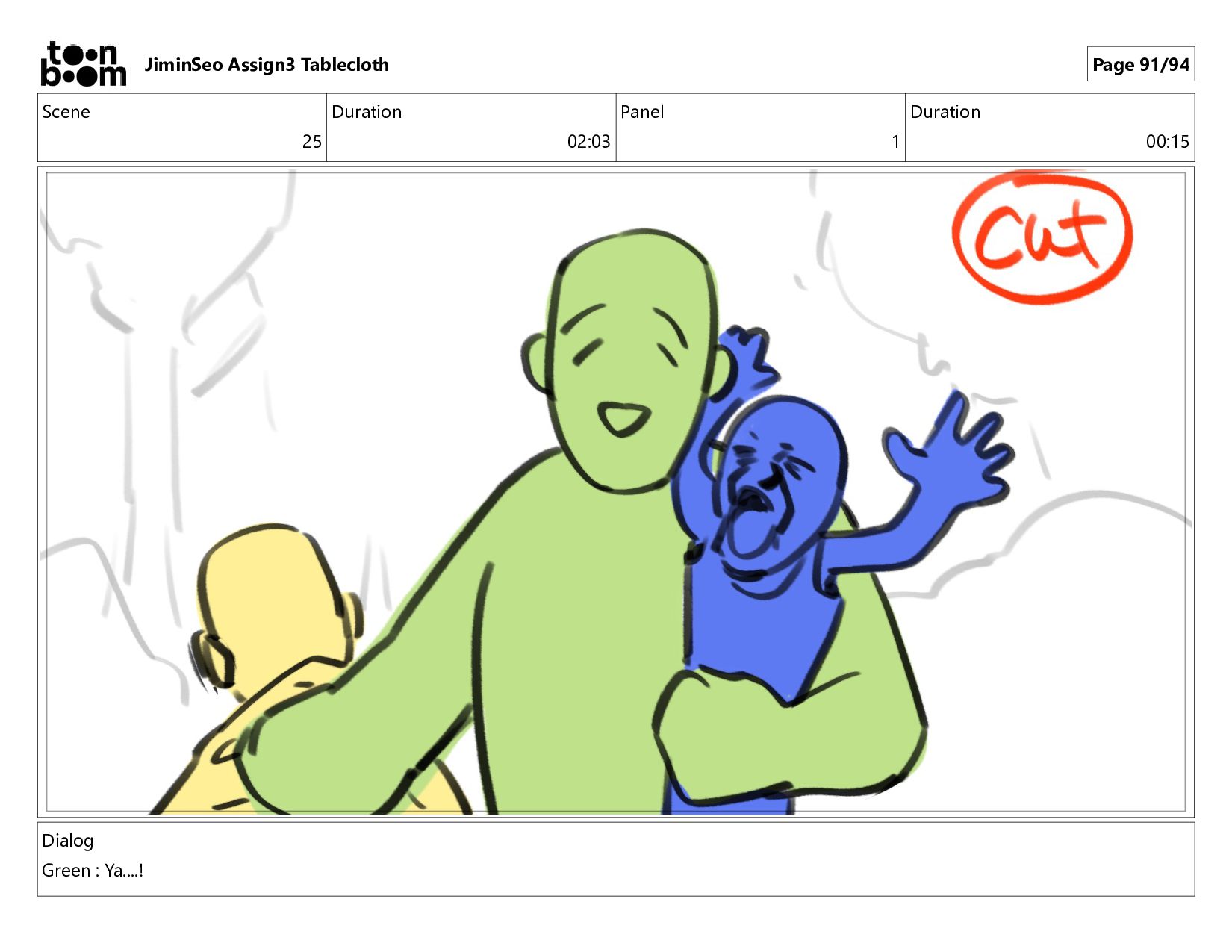 Scene 25 Duration 02:03 Panel 1 Duration 00:15 Dialog Green
