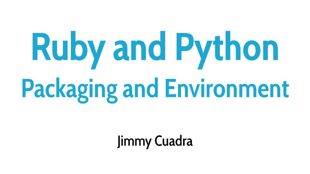 Ruby and Python are similar languages, but have different approaches to packaging, language runtime switching and dependency management. This talk provides an overview the similarities and differences.