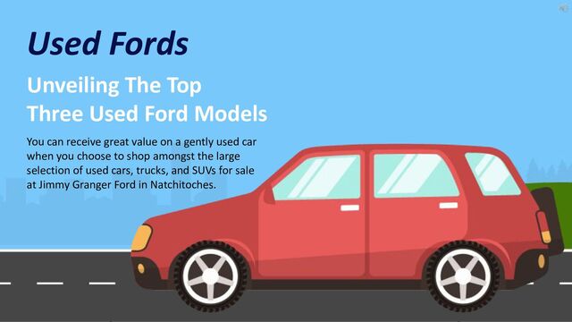 How would you like to discover how to get the best deal on your next used Ford, or any other make, with ease and peace of mind? Here's your opportunity to discover the top 3 Fords today and what makes them the best of the best. Jimmy Granger Ford offers used cars, trucks, and SUVs for sale in Natchitoches, LA. Visit the website and check out the collection of used vehicles or contact us!