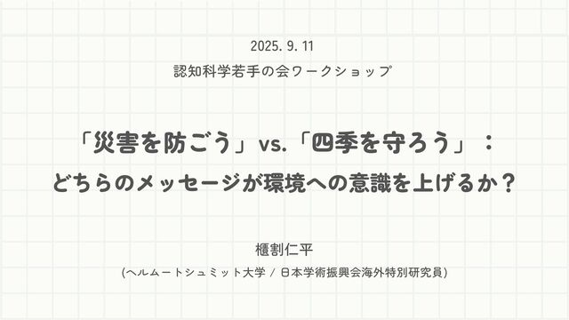 2025年9月11日に行われた認知科学若手の会ワークショップでの発表資料です。
