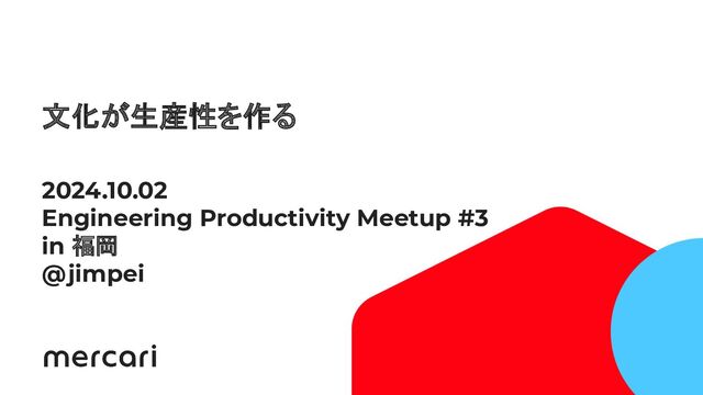 1 文化が生産性を作る 2024.10.02 Engineering Productivity Meetup #3 in 福岡 @jimpei