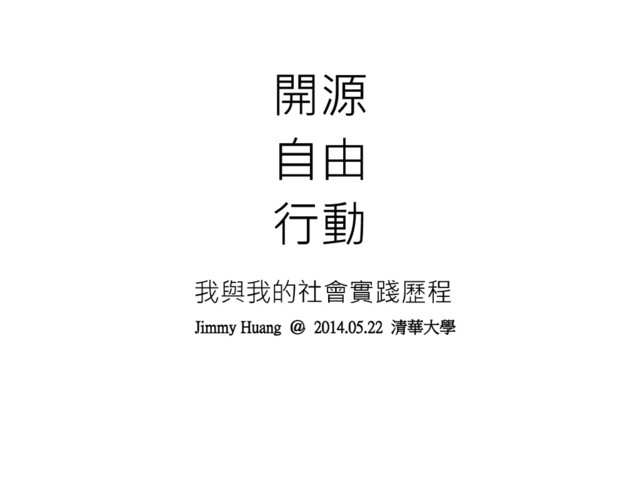 開源 自由 行動 Jimmy Huang @ 2014.05.22 清華大學 我與我的社會實踐歷程