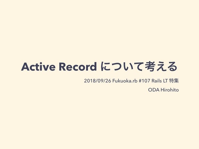 Active Record ʹ͍ͭͯߟ͑Δ 2018/09/26 Fukuoka.rb #107 Rails LT ಛू ODA