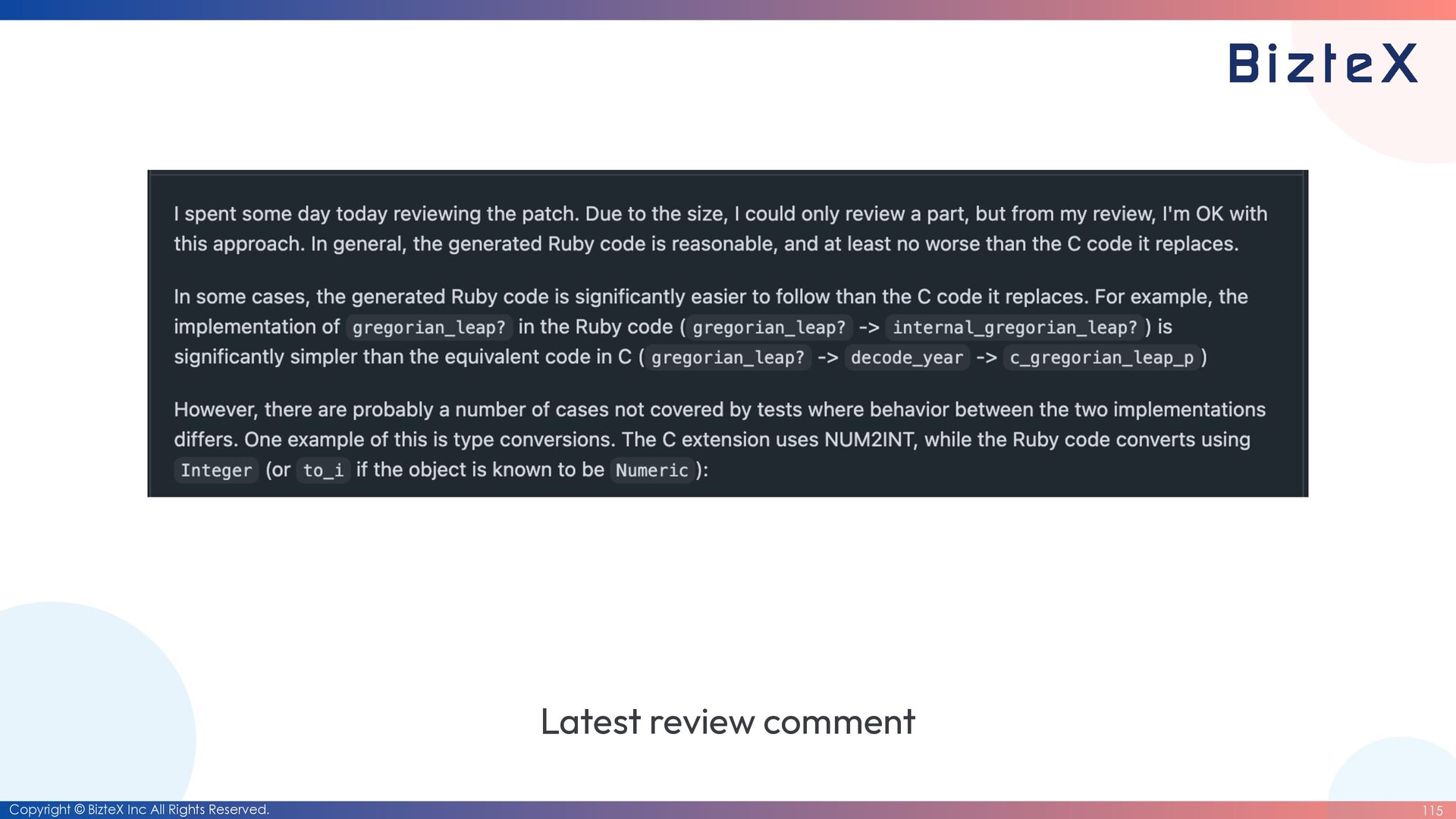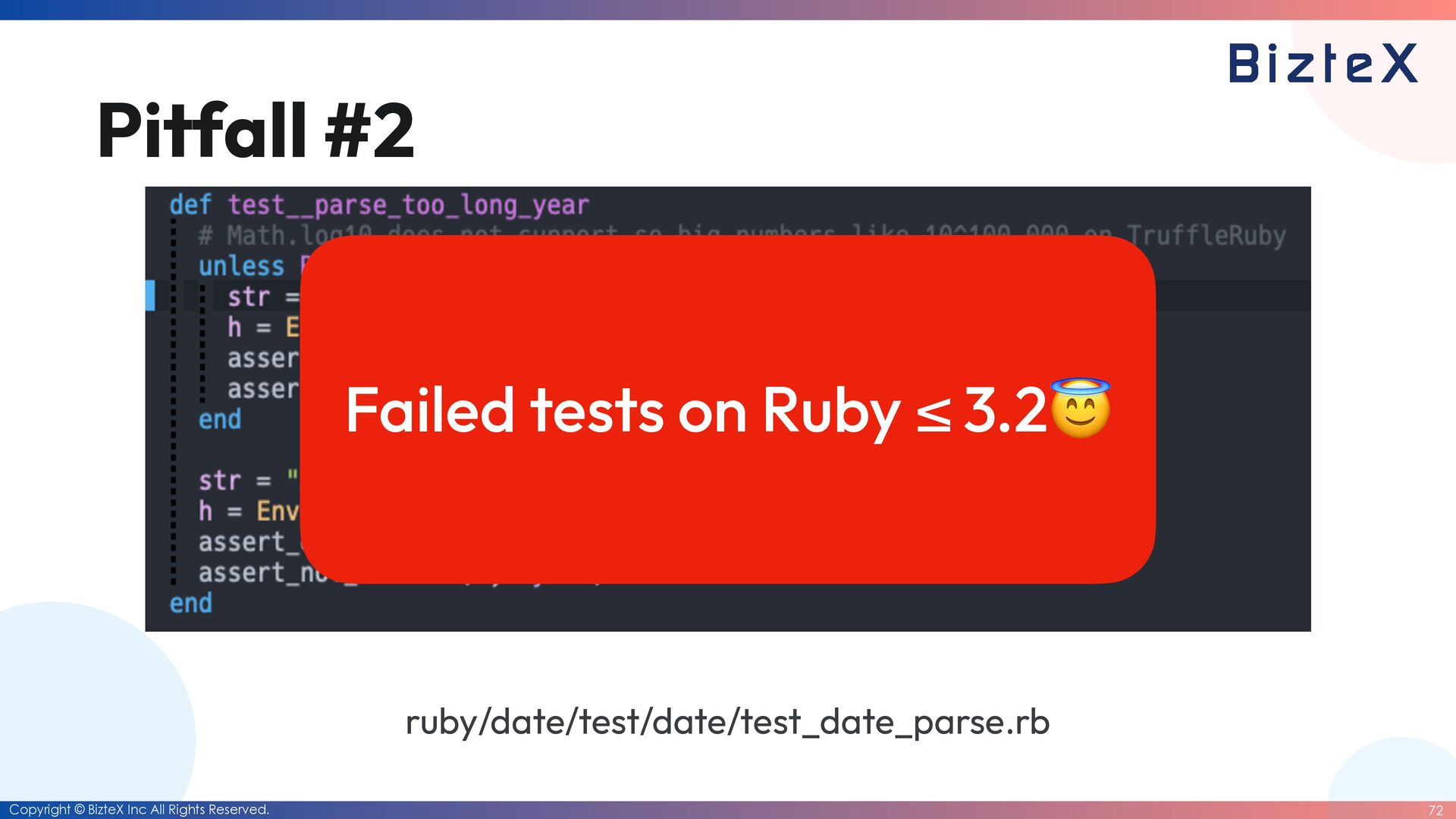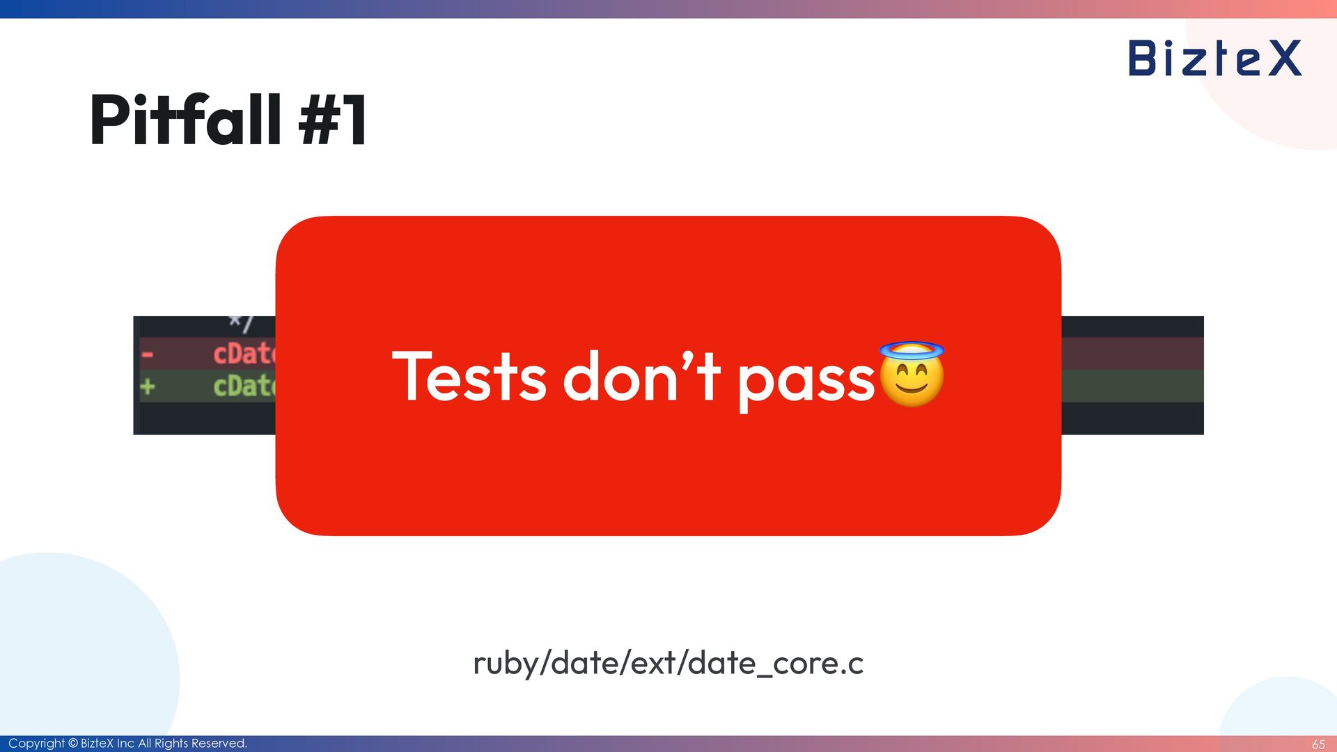 causes • Tests that had been partially ported from test_date.rb were somehow deleted by the AI agent. • The AI agent was only adding tests that passed the logic it had implemented. • All test code under ruby/date/test/date has been moved to ruby_date. • Only the tests in test_date.rb have been fi xed to pass.