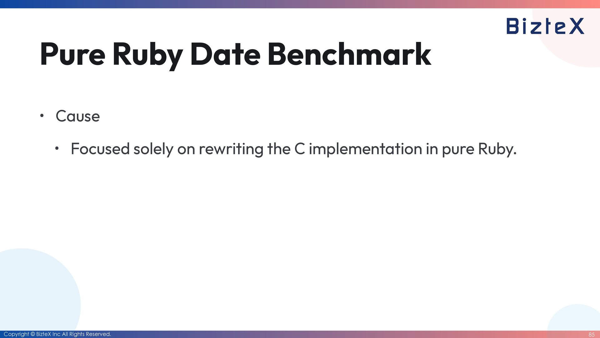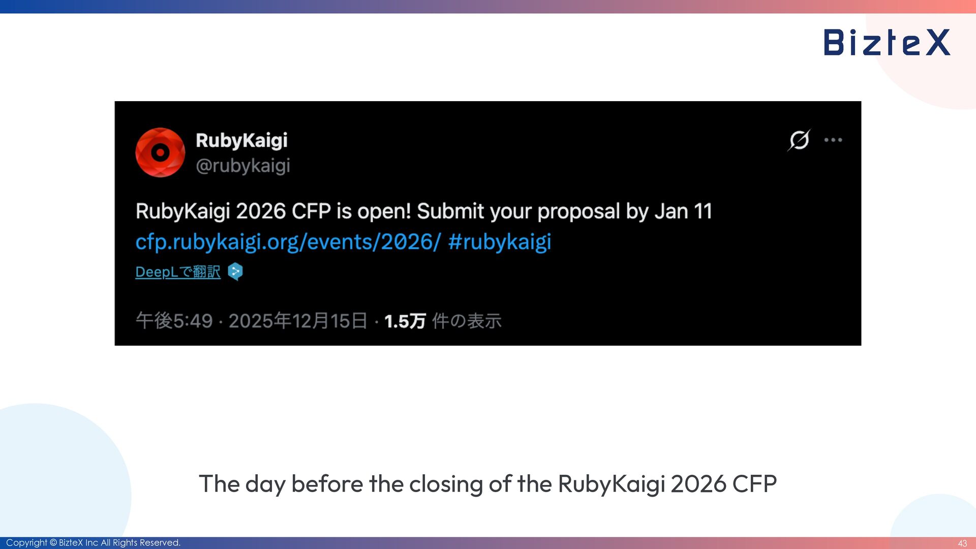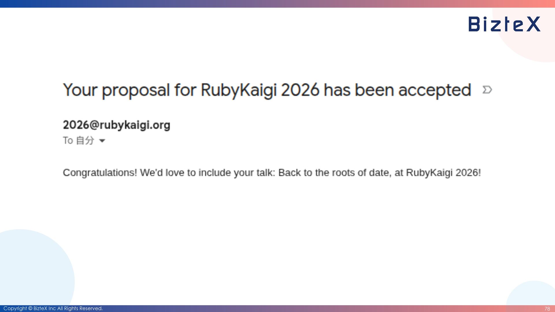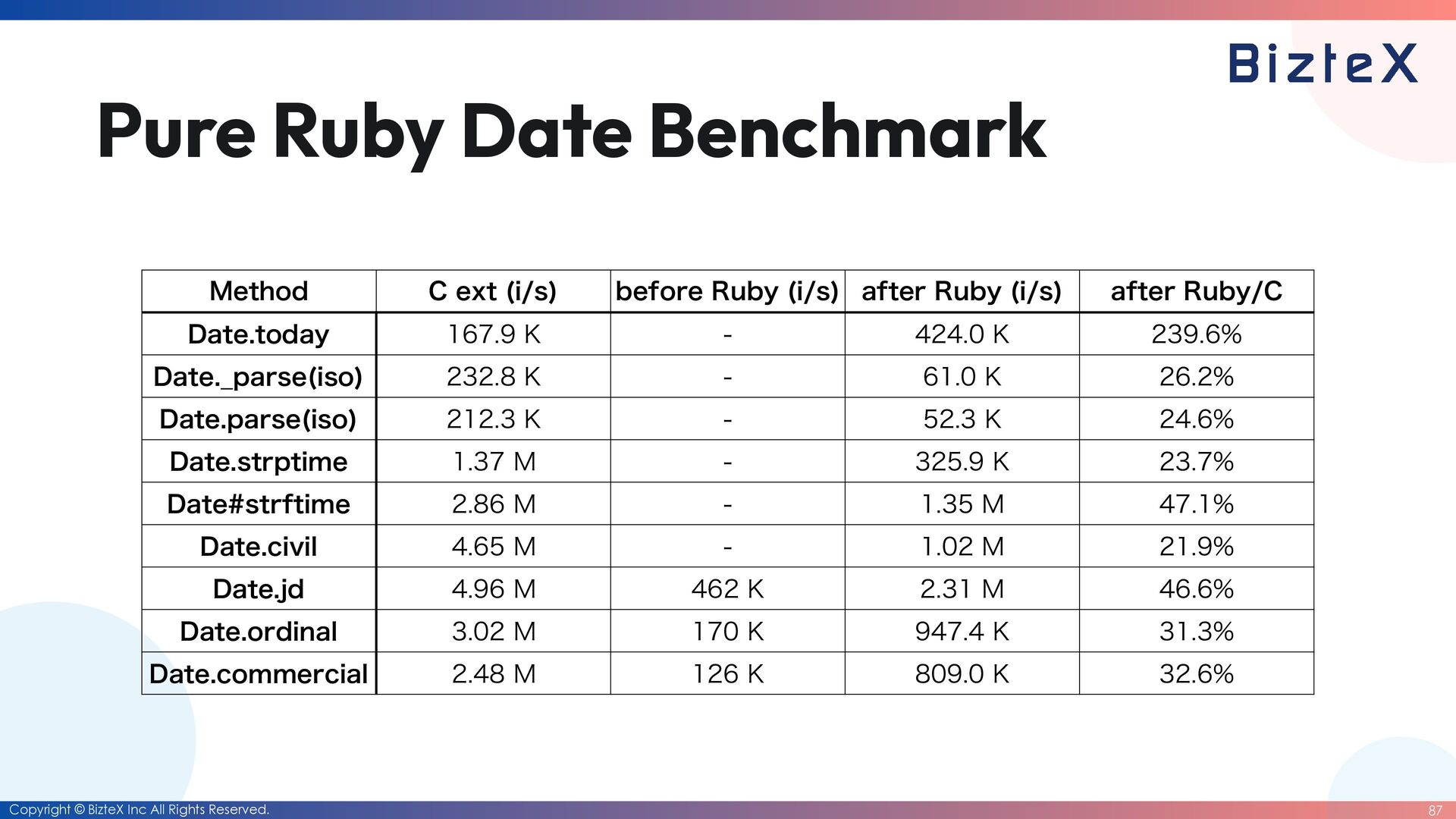 before the closing of the RubyKaigi 2026 CFP • Development of RubyDate is complete. • Until the end of March 2026 • Date rewriting complete. • Until the end of March 2027