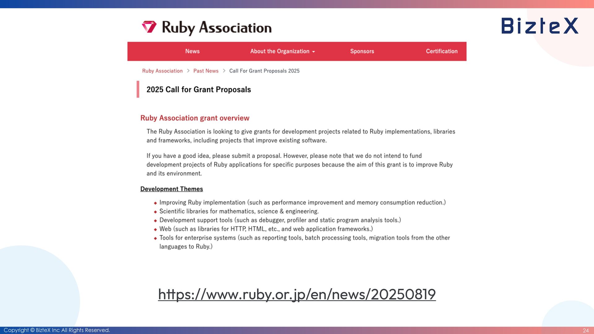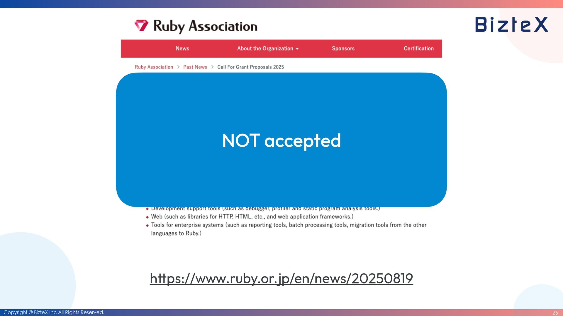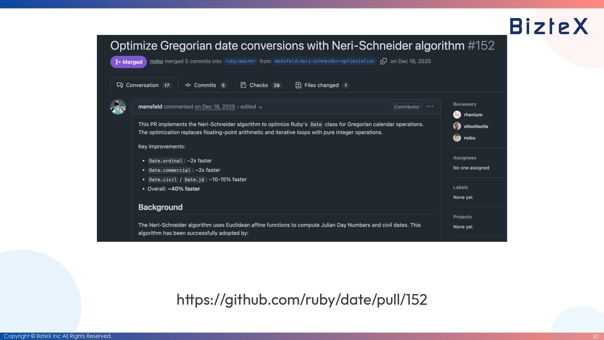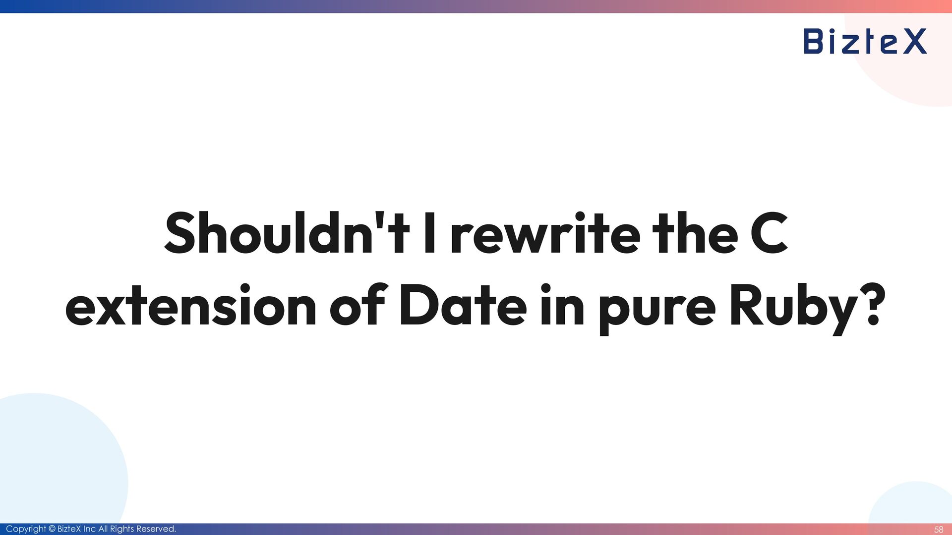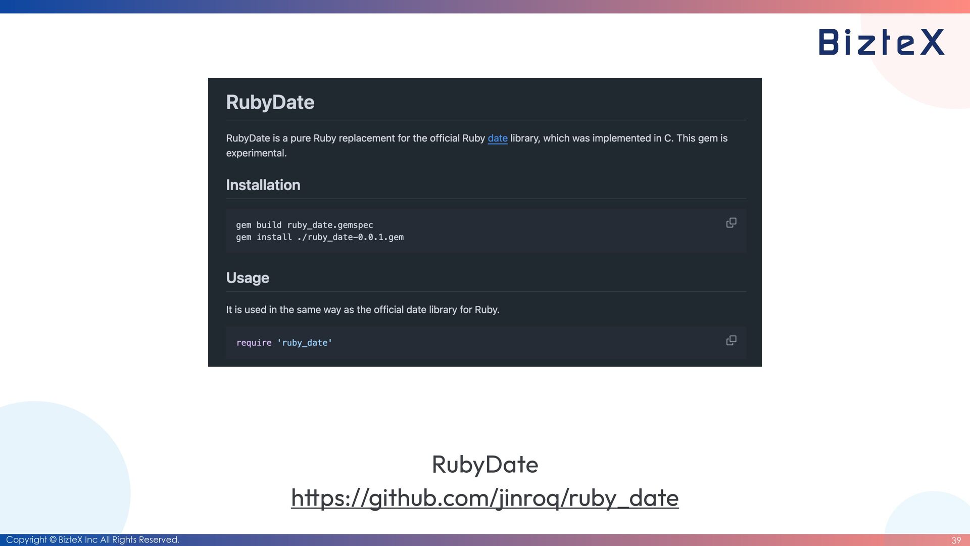 before the closing of the RubyKaigi 2026 CFP • Development of RubyDate is complete. • Until the end of March 2026 • Date rewriting complete. • Until the end of March 2027