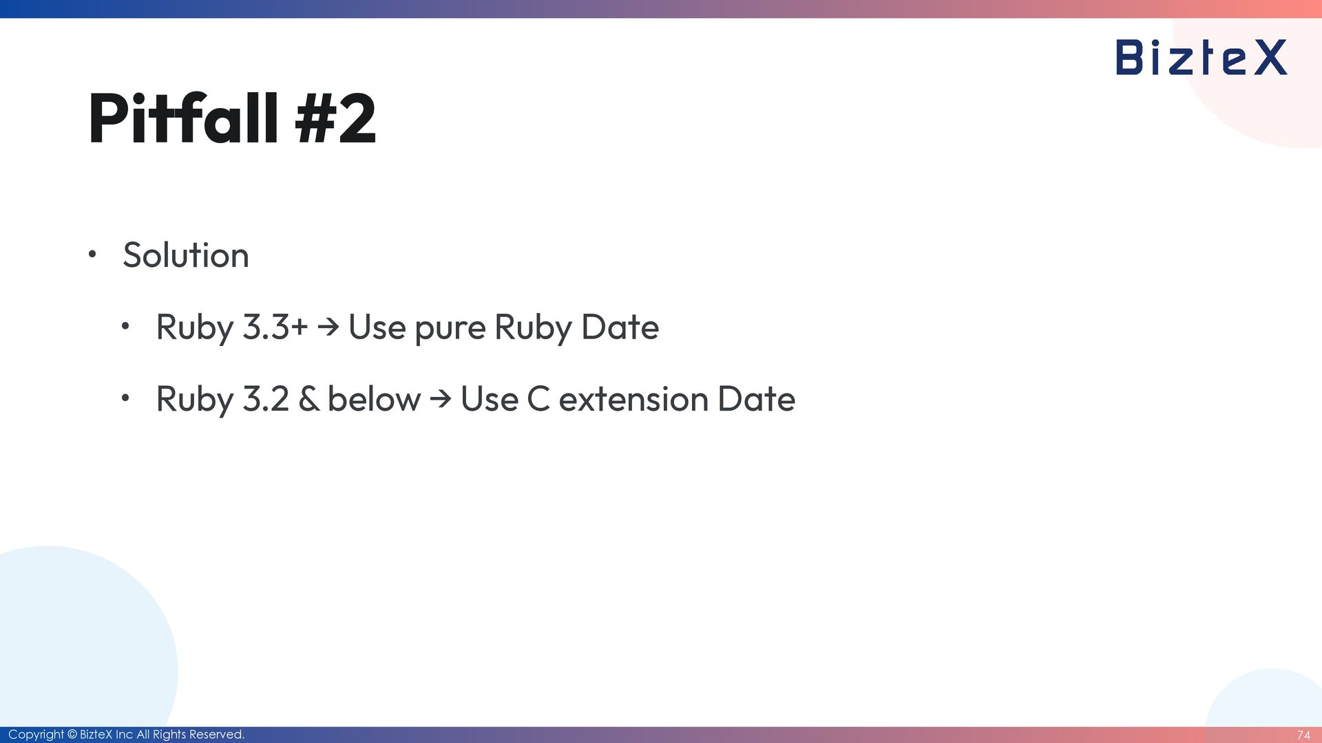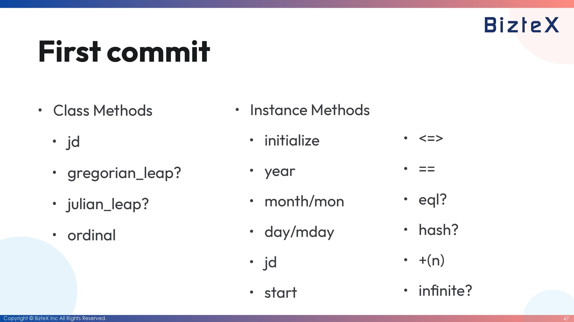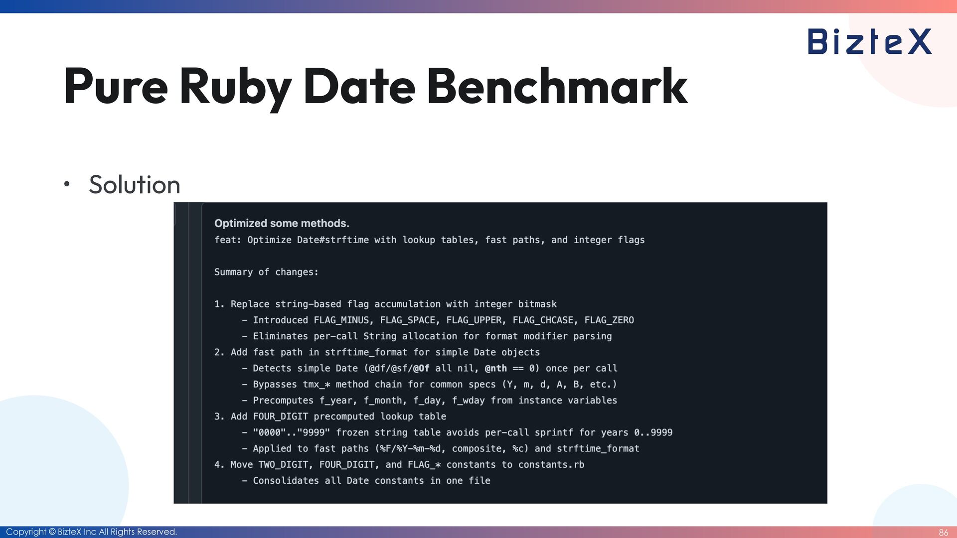 for the date library and the datetime library • The Date class will be deprecated. • Instead, a simpli fi ed The Date class will be created. • Move the Date class into a core class. • Currently, there are no major problems, so Ruby commi tt ers will continue with maintenance that only involves version updates. How did I approach this challenge?