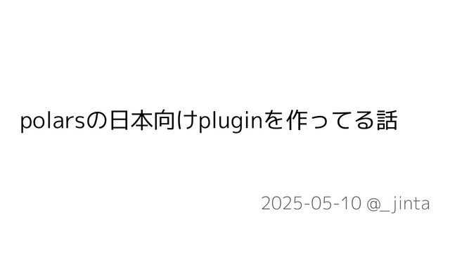 - Github: https://github.com/tanaka-jin/polars-japanese - Docs: https://polars-japanese.readthedocs.io/ja/latest/ - pypi: https://pypi.org/project/polars-japanese/