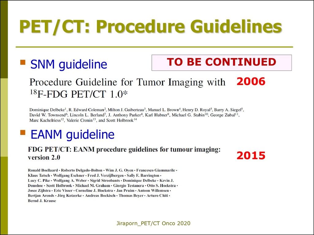1.0 Lung cancer-NSCLC for staging Colorectal cancer for restaging (suspected tumor recurrence) Version 2.0 Lymphoma Esophageal cancer Uterine cervical cancer Thyroid cancer_DTC