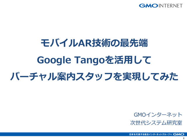 1 1 モバイルAR技術の最先端 Google Tangoを活⽤して バーチャル案内スタッフを実現してみた GMOインターネット 次世代システム研究室
