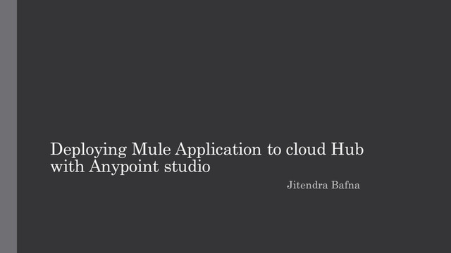 integration platform as a service (iPaaS). Through the Runtime Manager, it allows you to deploy sophisticated cross-cloud integration applications in the cloud, create new APIs on top of existing data sources, integrate on premise applications with cloud services, and much more. For deploying Mule Application to Cloud Hub. In package explorer pane right click on your application then select Anypoint Platform < Debug to cloud.