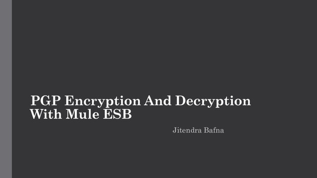 Privacy) encryption is used to encrypting, signing and decrypting the data like emails, text, files, directories and whole disk partitions and it also increases the security of emails communication. Public and Private key plays vital role in PGP to encrypt and decrypt the data. Generally public key is used to encrypt the data and it is always shared with end users. Private Key is used to decrypt the data and it never shares with anyone. For example, Alice will used public key to encrypt the data and send to Bob. Now, Bob will decrypt the data using private key. Mule ESB added PGP Encryption and Decryption as a part of Enterprise security. Let’s walkthrough how to implement PGP with Mule ESB.