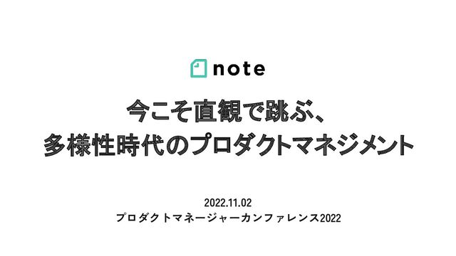 今こそ直観で跳ぶ、 多様性時代のプロダクトマネジメント 2022.11.02 プロダクトマネージャーカンファレンス2022