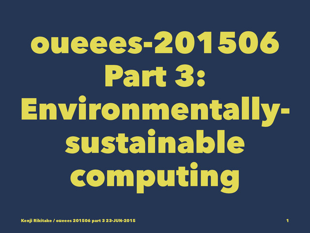 data centers 1 • 2013: 91TWh / 34 x 0.5GW power plants • 2020: 140TWh / 50 x 0.5GW power plants • 2020: 150Mt CO2 pollution 1 Data Center Efficienct Assessment, Natural Resource Defense Council, August 2014 Kenji Rikitake / oueees 201506 part 3 23-JUN-2015 21