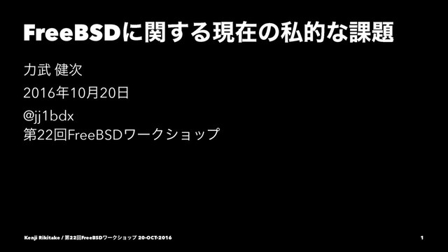 FreeBSDʹؔ͢Δݱࡏͷࢲతͳ՝ ྗ ݈࣍ 201610݄20 @jj1bdx ୈ22ճFreeBSDϫʔΫγϣοϓ Kenji Rikitake / ୈ22ճFreeBSDϫʔΫγϣοϓ