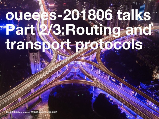 of each node throughout the network —Path vector protocol: exchanging path of nodes for each network instead of the link costs —Highly vulnerable to external attacks Kenji Rikitake / oueees 201806 part 2 3-JUL-2018 35